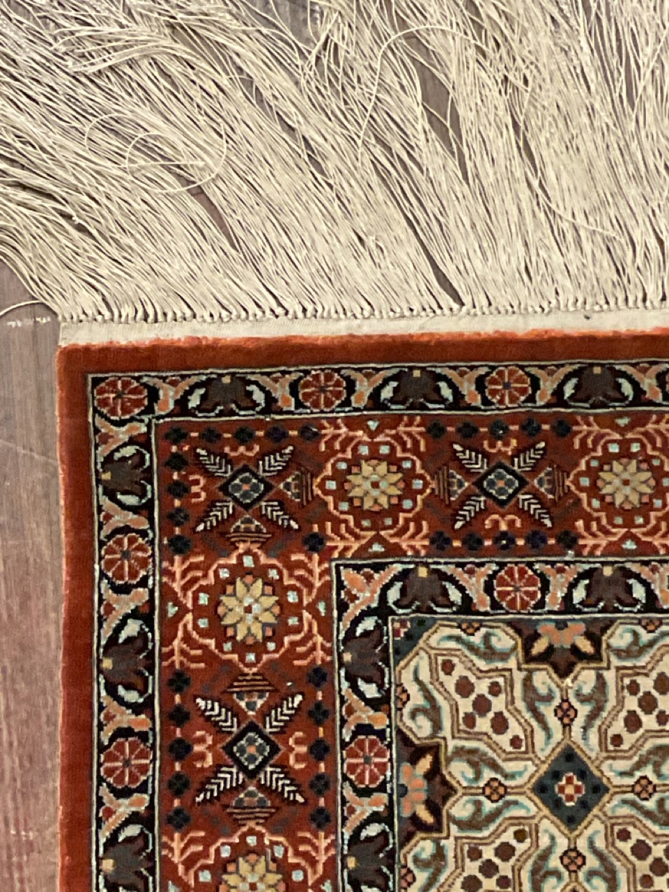 Fine Persian hand woven silk carpet.