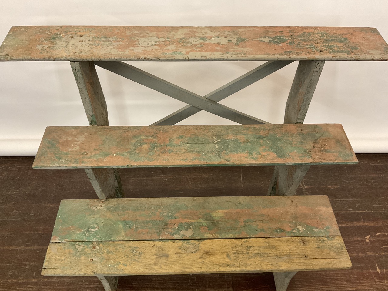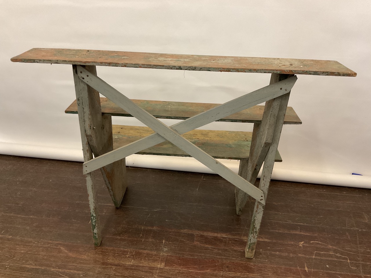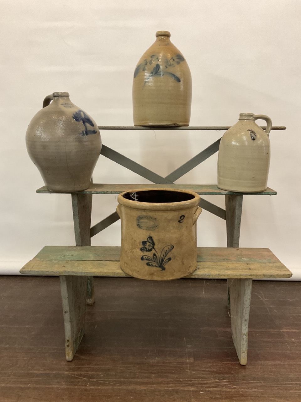 Country primitive painted crock stand or plant stand.
