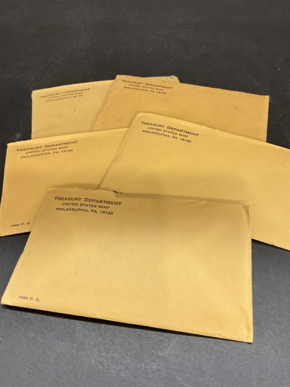 Four (4) U.S. 1964P Mint Sets and one 1961 set. Total of five mint sets. 90% Silver.