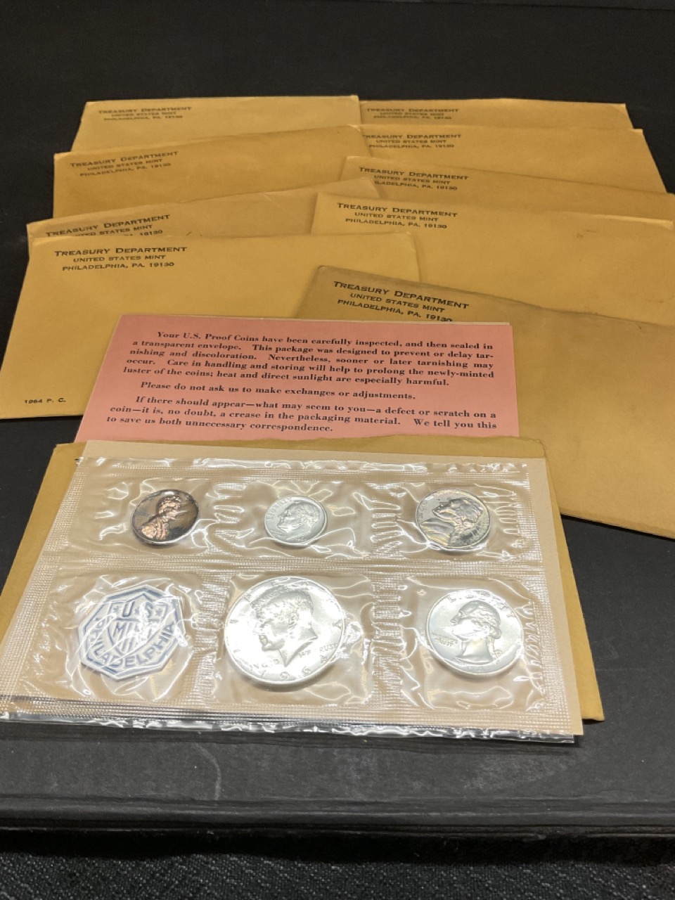 Ten (10) 1964P U.S. Mint Proof Sets. Thirty (30) coins total, 90% silver.