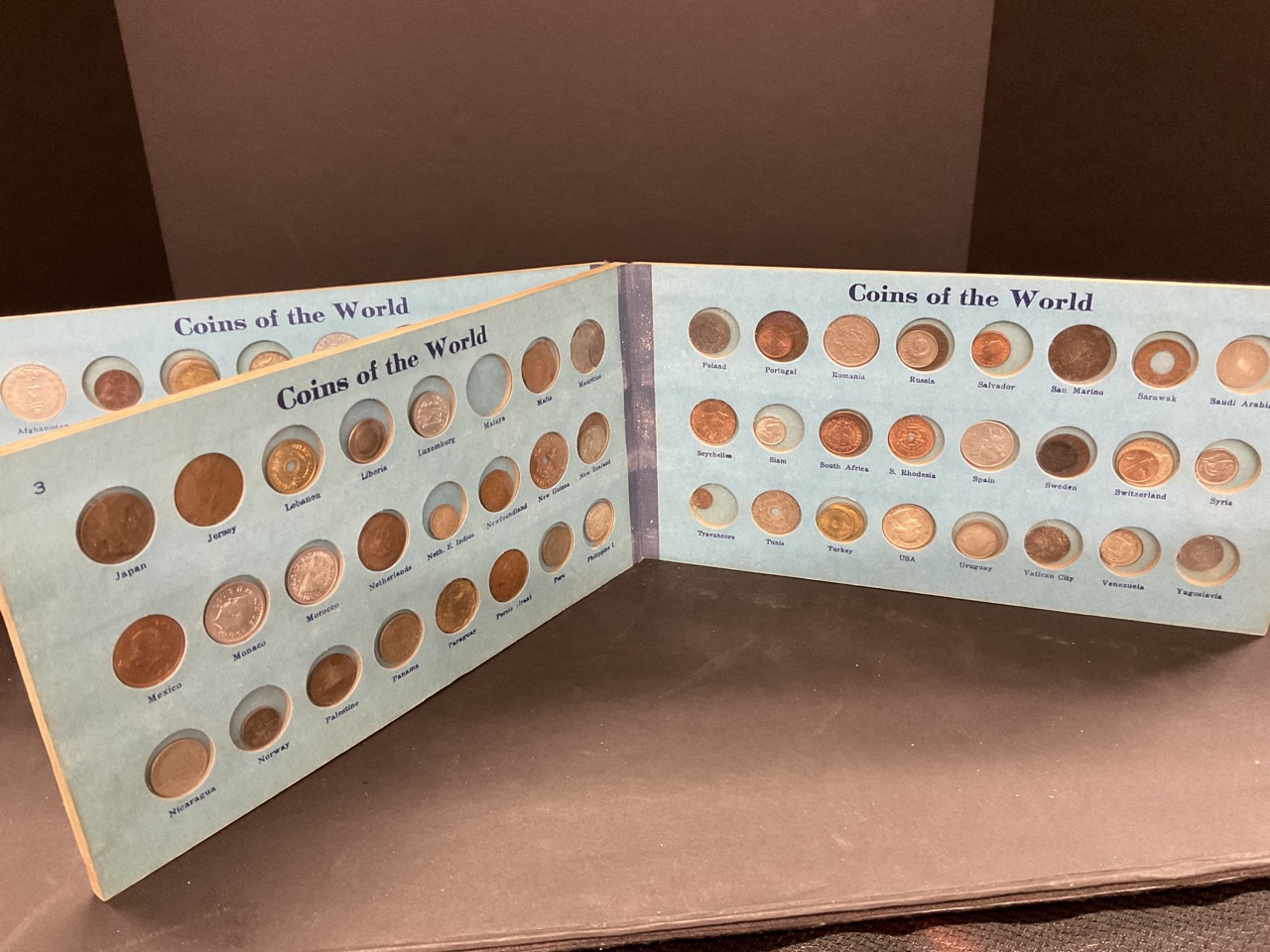 A Popular album containing coins of the world. Many silver and interesting content. Please see photograph preview. Estate collection.