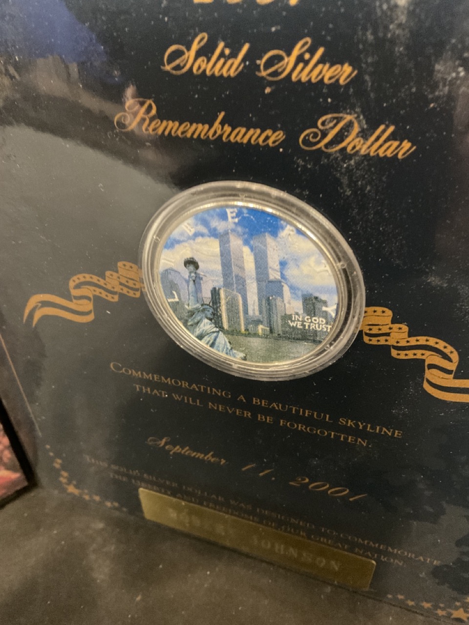U.S. Commemorative Silver Eagle 2001 9/11/2001. Painted to remember September 11th by Fine Art Gallery.
