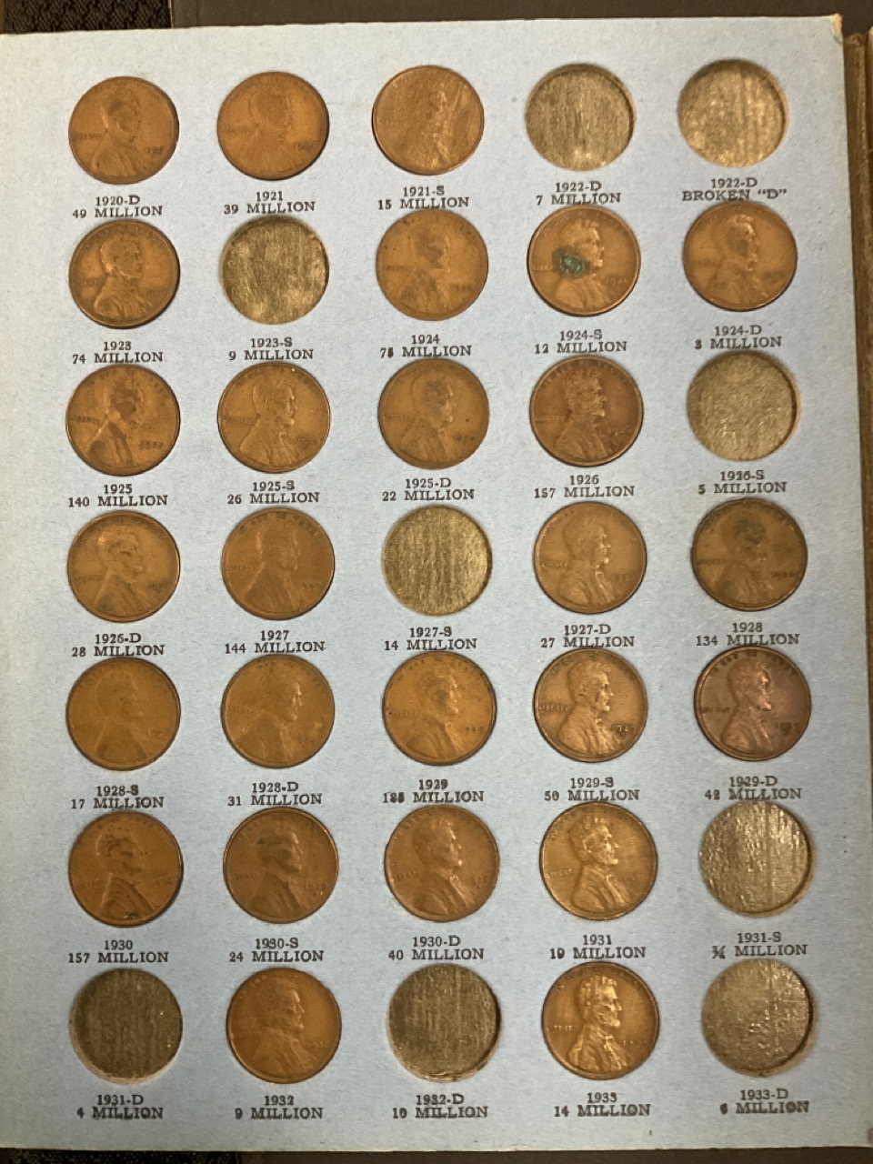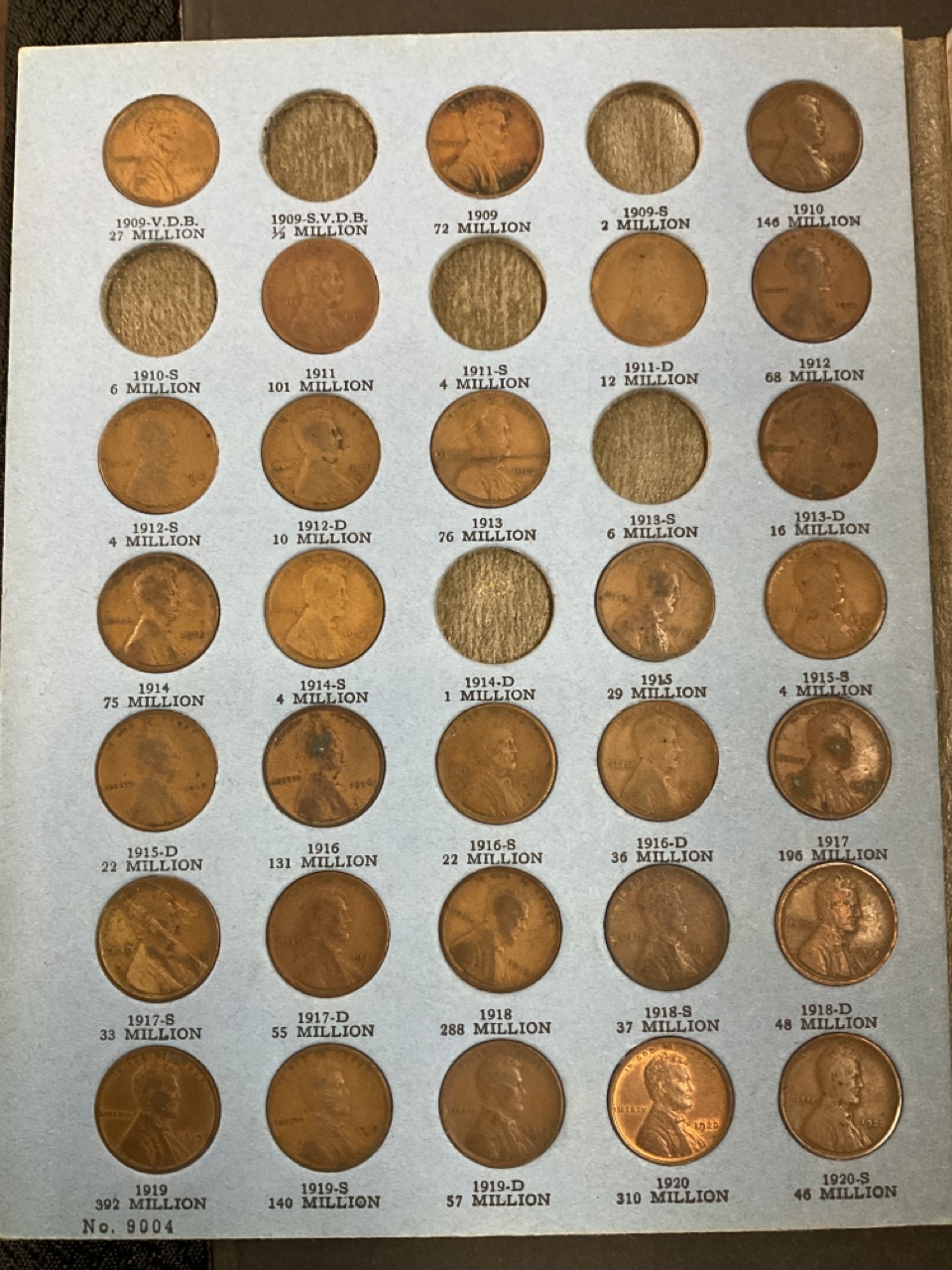 Whitman Album Containing Lincoln Wheat Cents. Many semi-key dates and mint marks. Please see photograph preview.