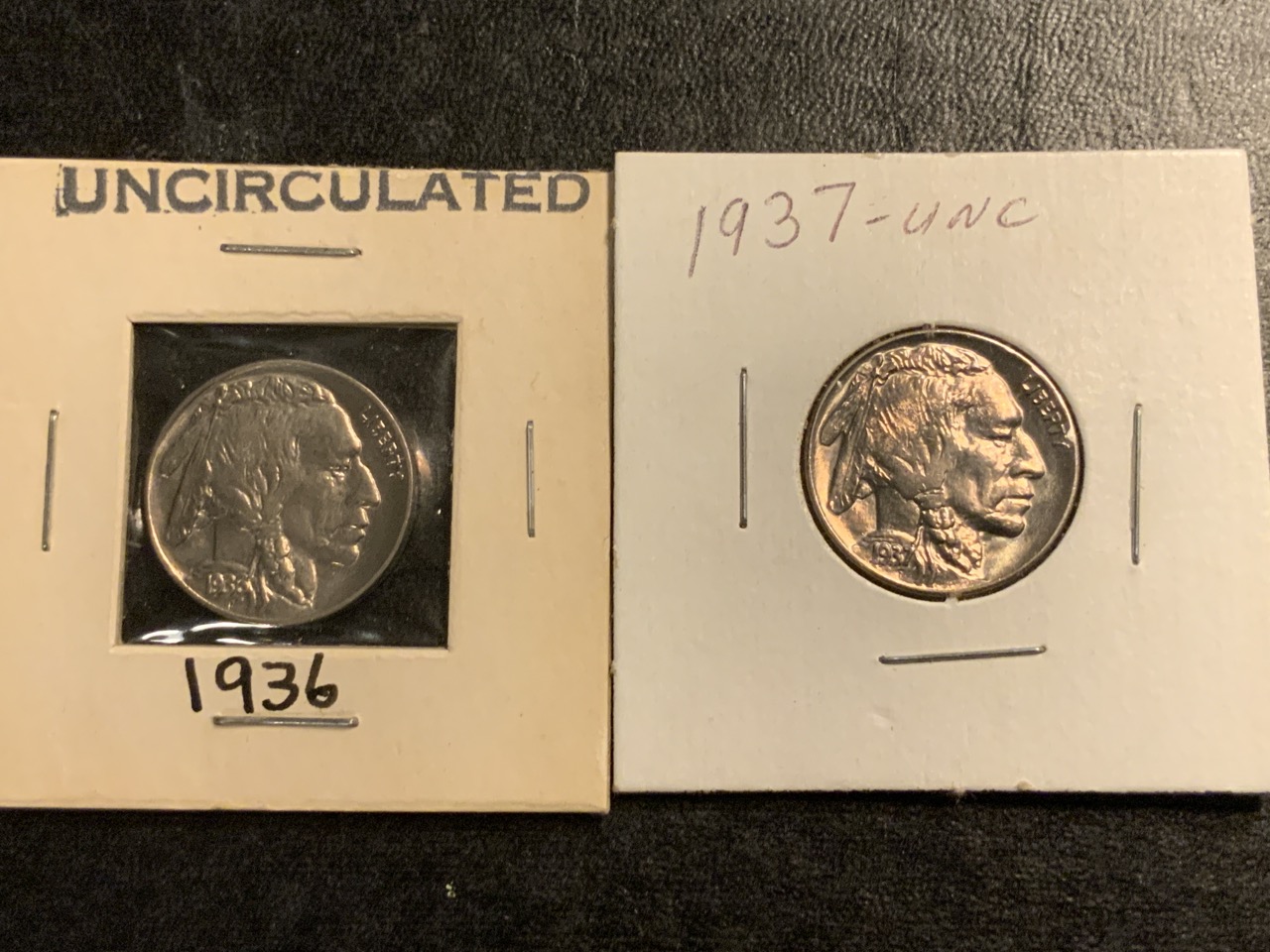 Two (2) Uncirculated Mint State Buffalo Nickels 1936P,1937P.