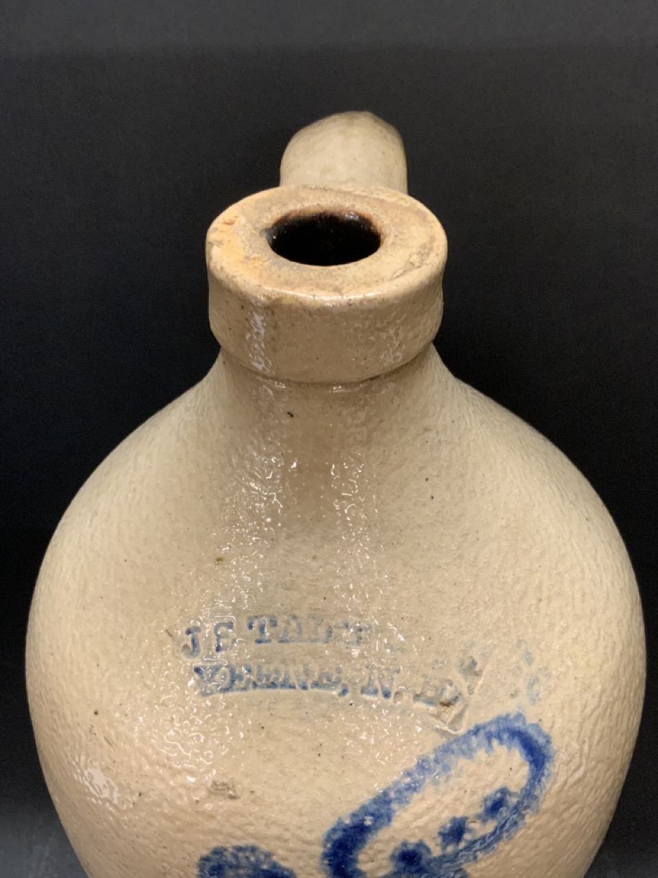 J.S. Taft, Keene N.H. 1 Gallon stoneware jug with blue decoration.