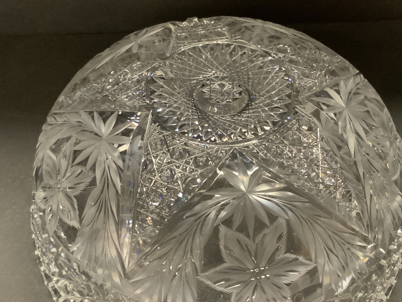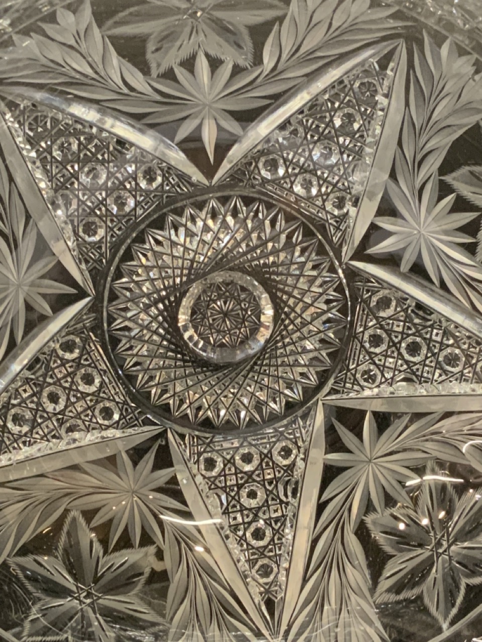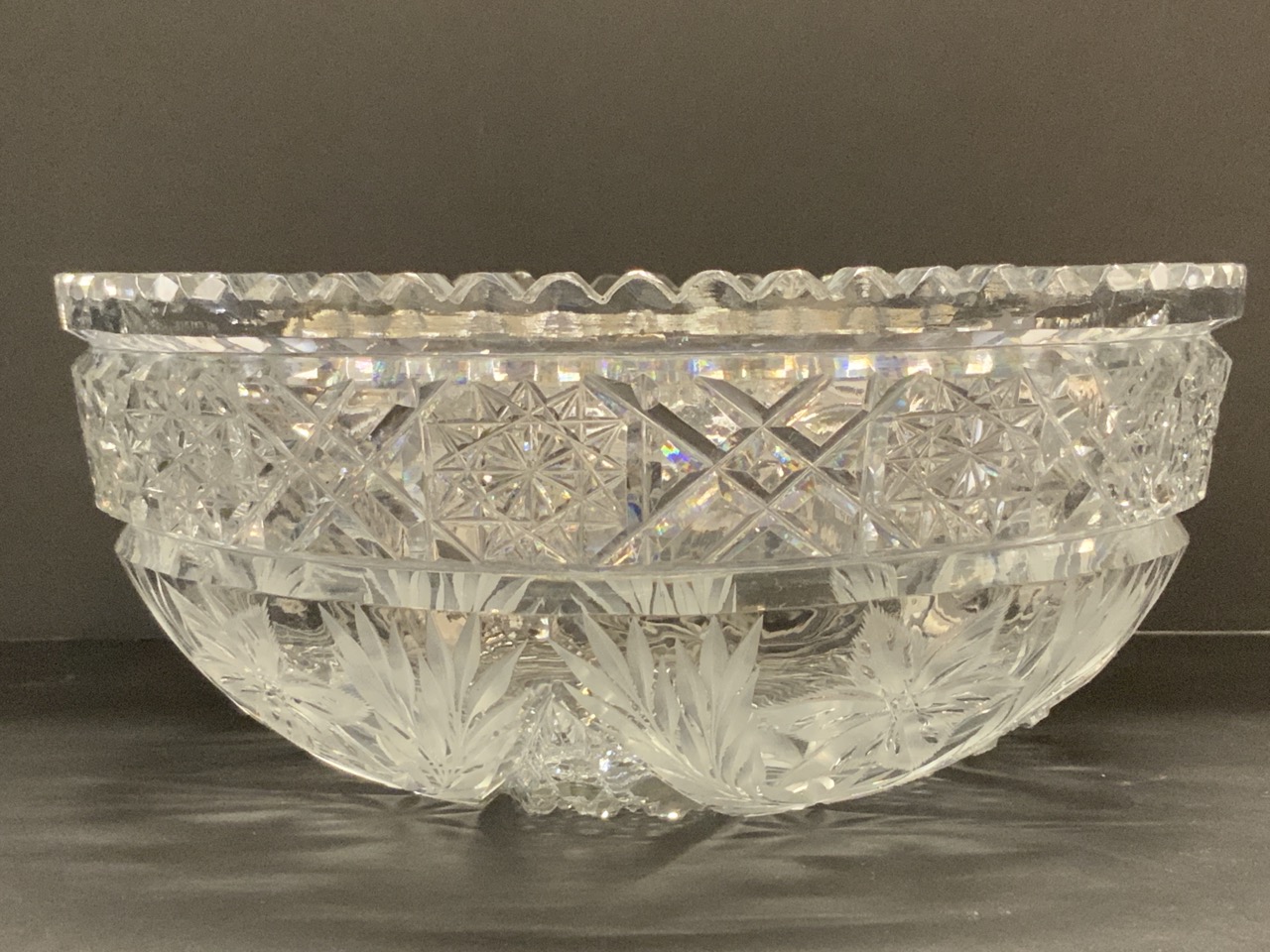 ABCG cut glass bowl with intaglio design.
