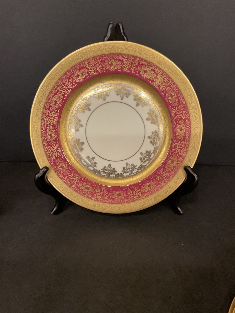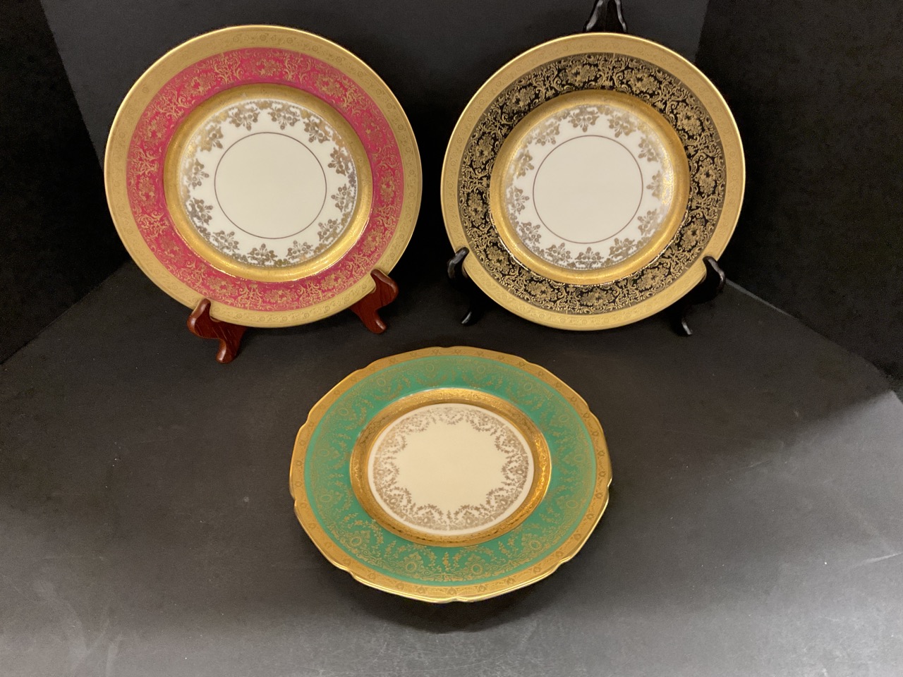 Heinrich & Co Porcelain Gold Gilted Dinner Plates. Three total.