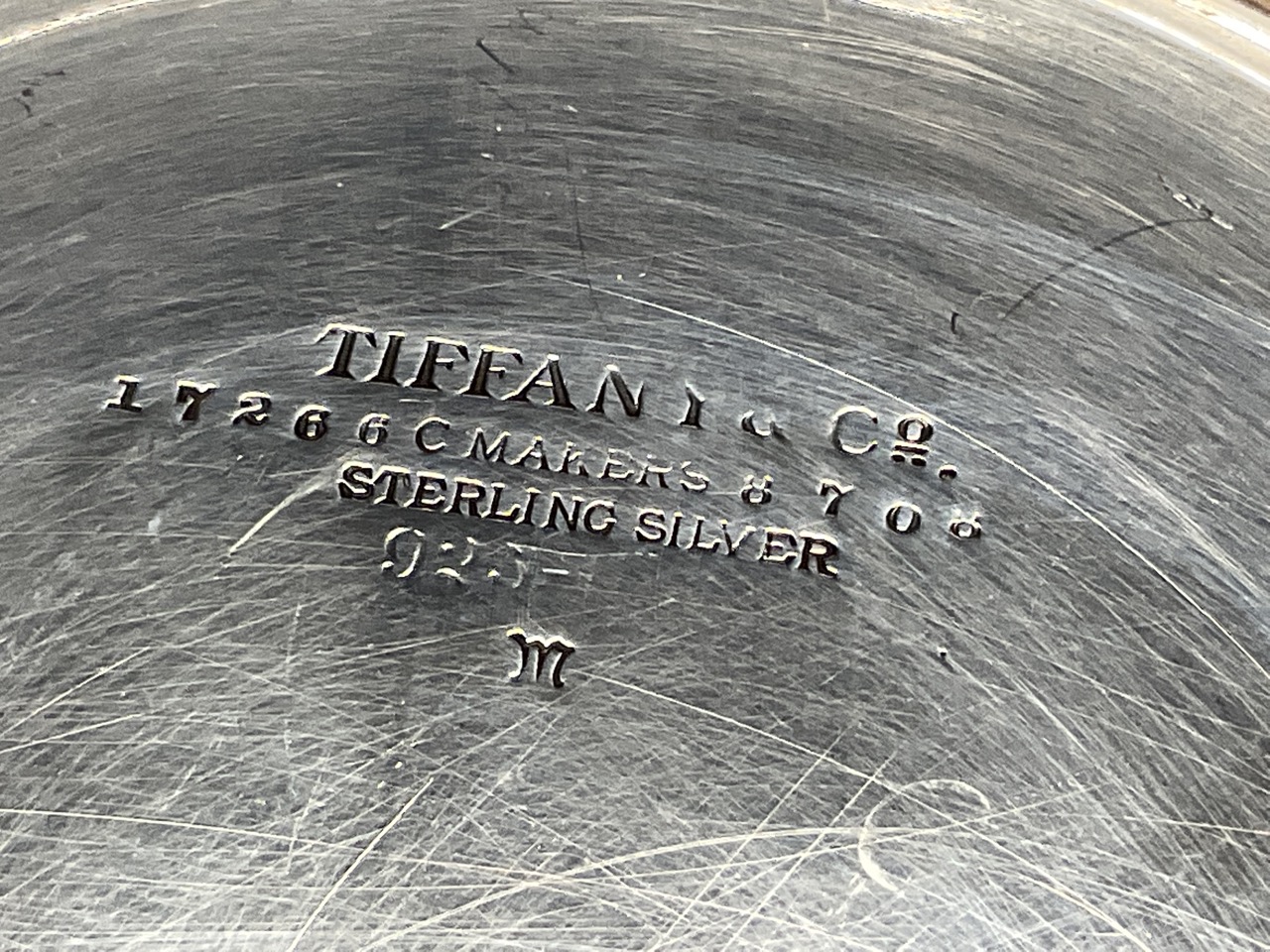 Tiffany & Company sterling silver makers pedestal serving tray.