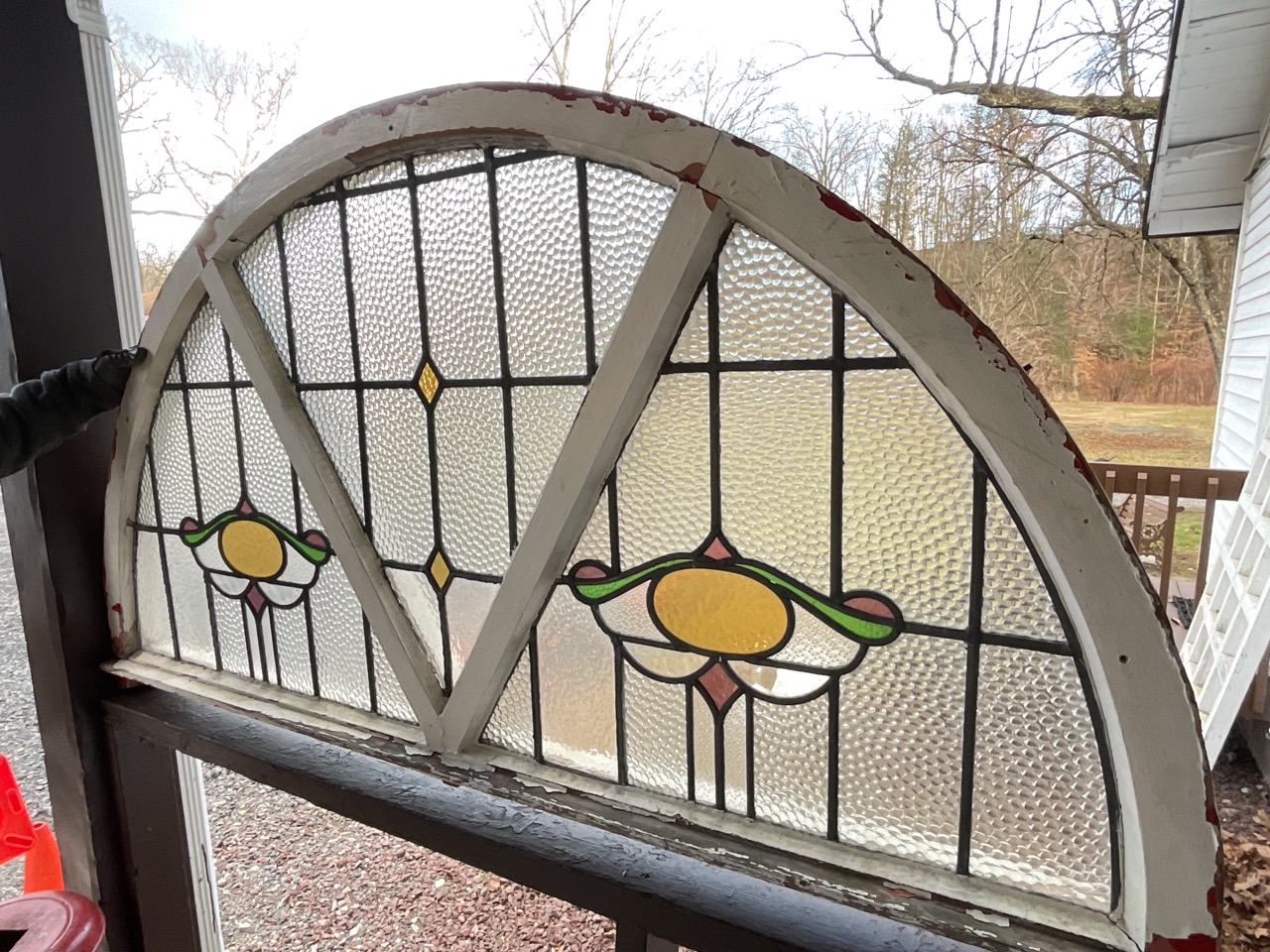 Large Stained Glass Half Moon Window