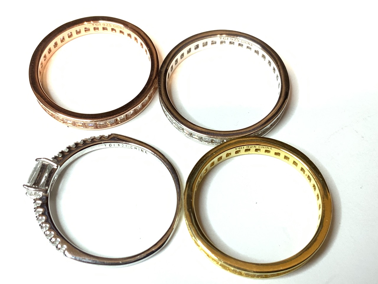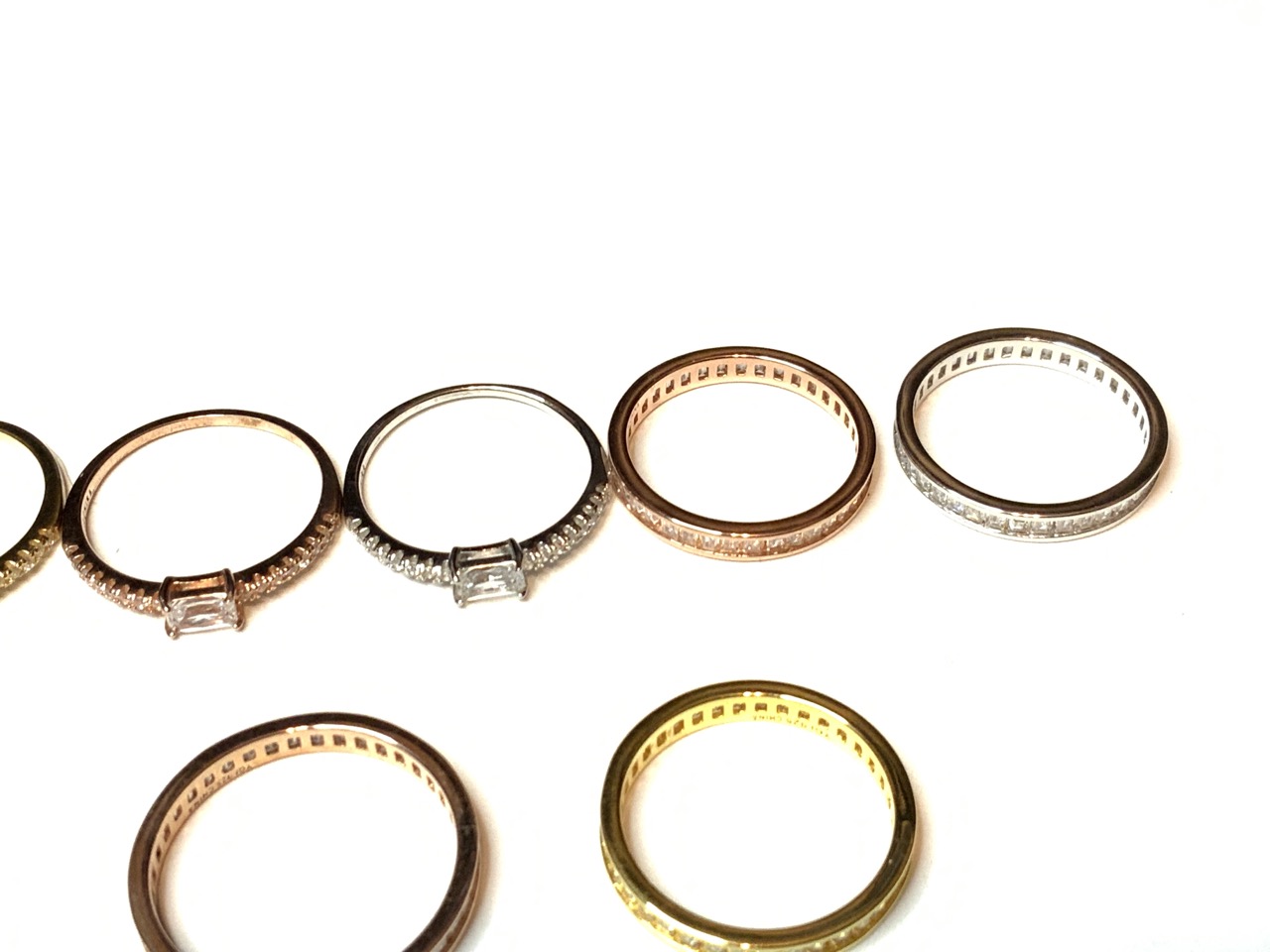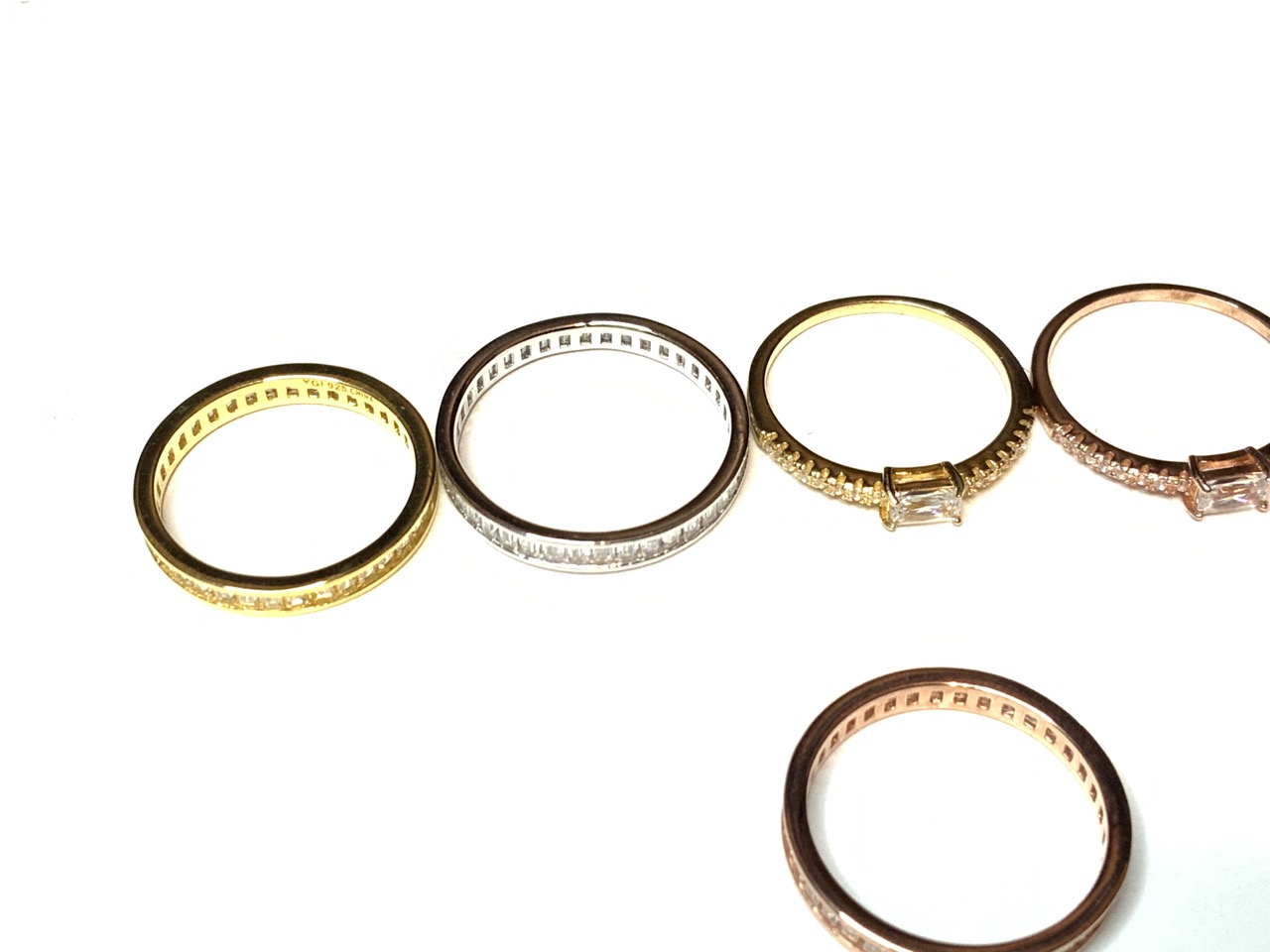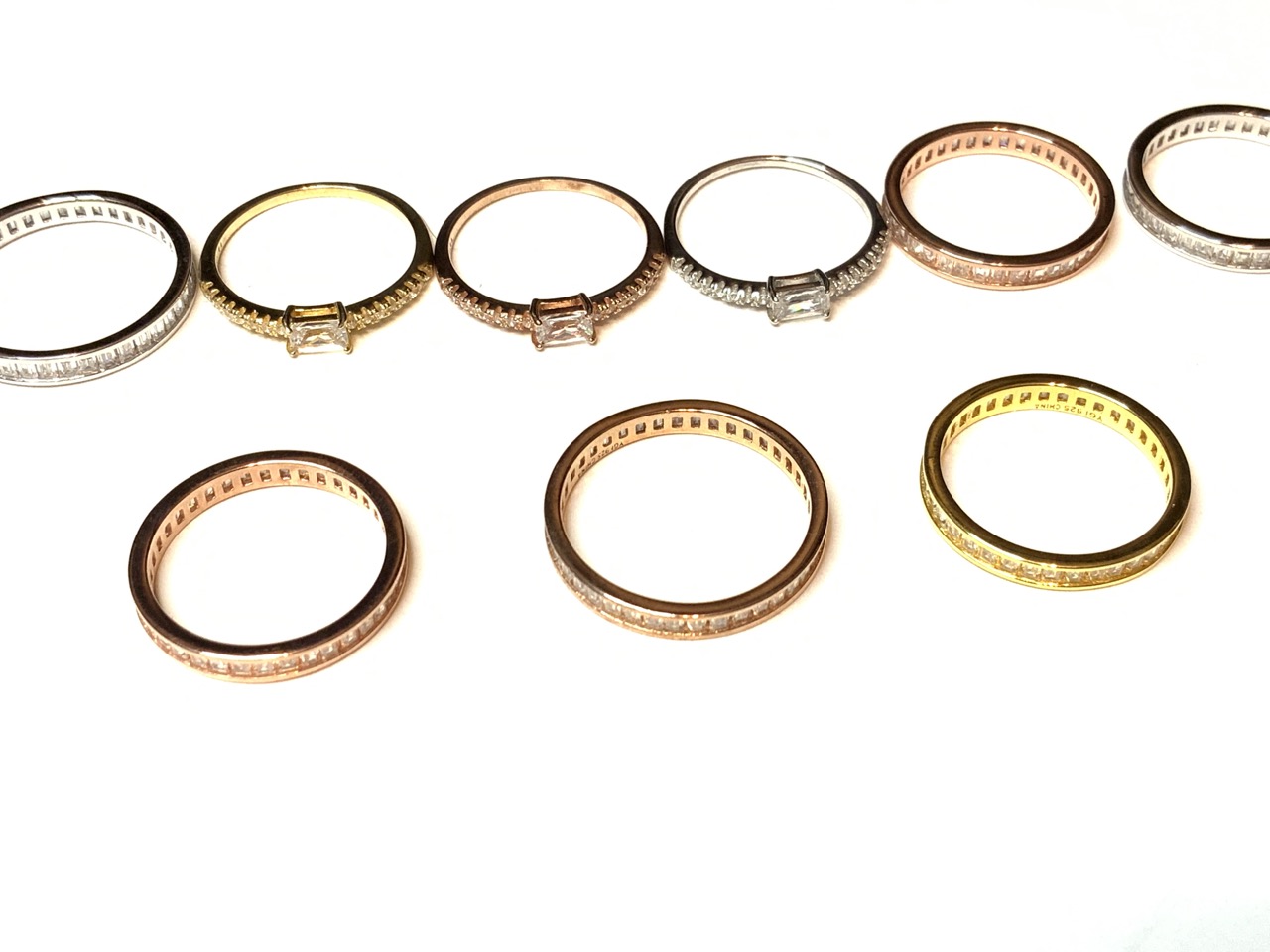 Ten (10) Contemporary Sterling Silver Gemstone Band Rings. All marked 925. Sizes 8-9