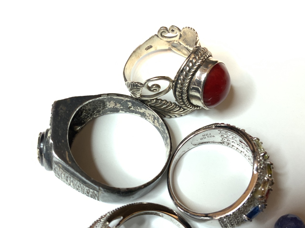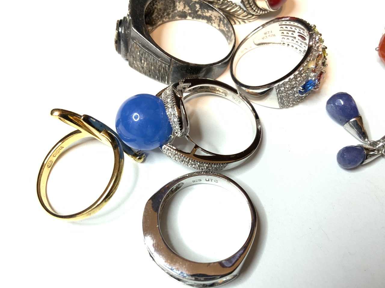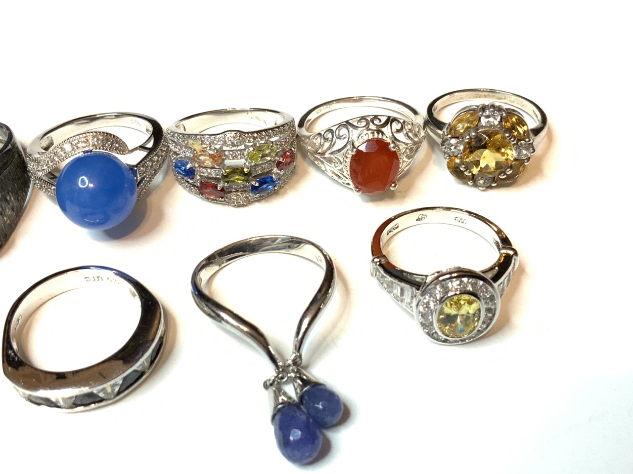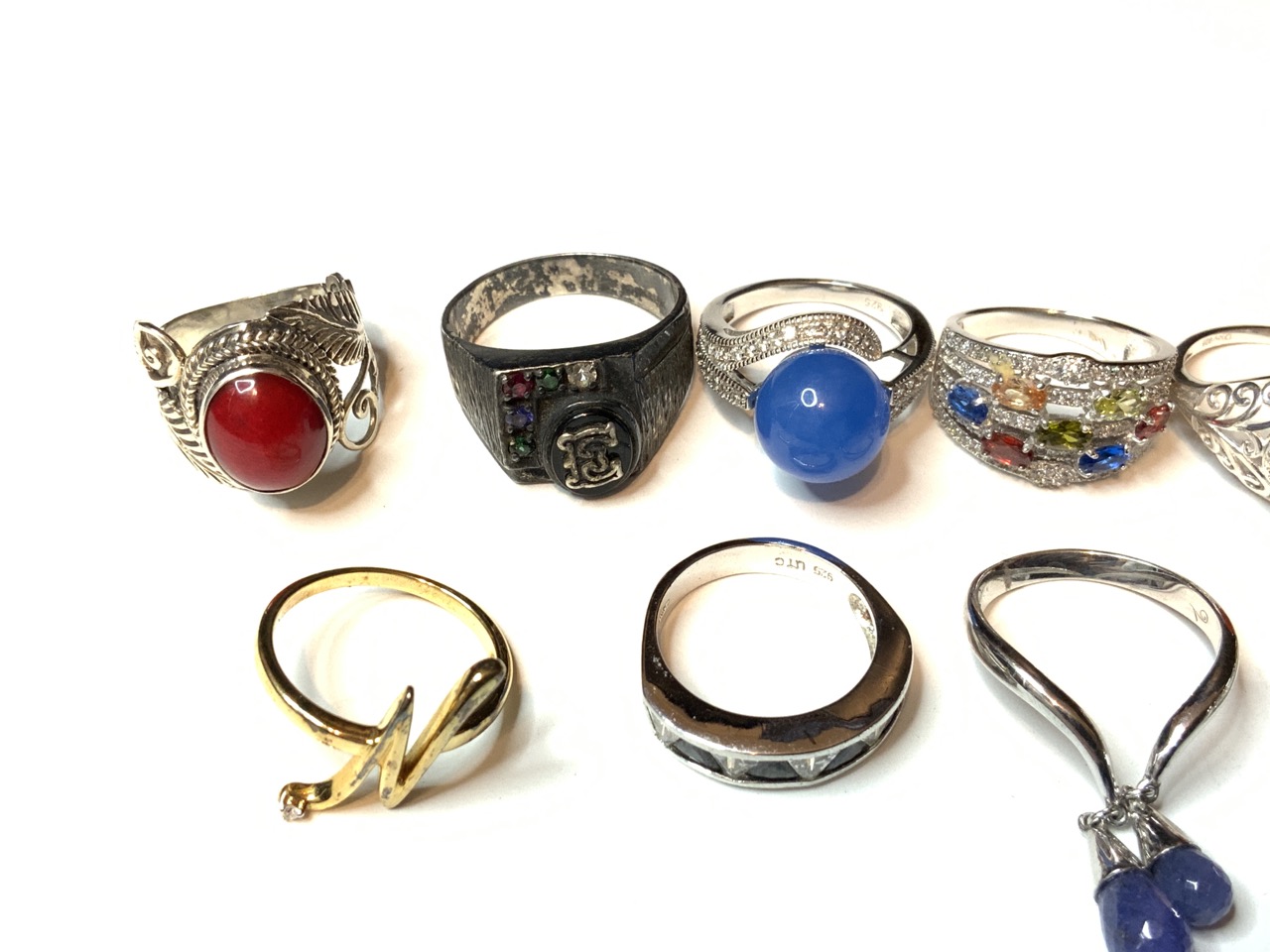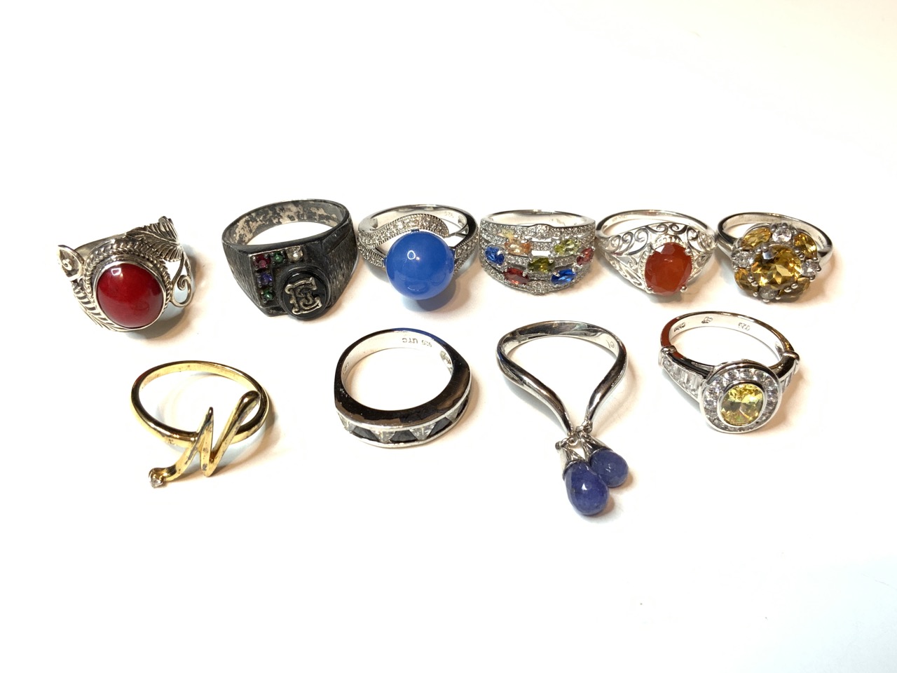 Ten (10) Contemporary Sterling Silver Rings. All marked 925. Sizes 8-9