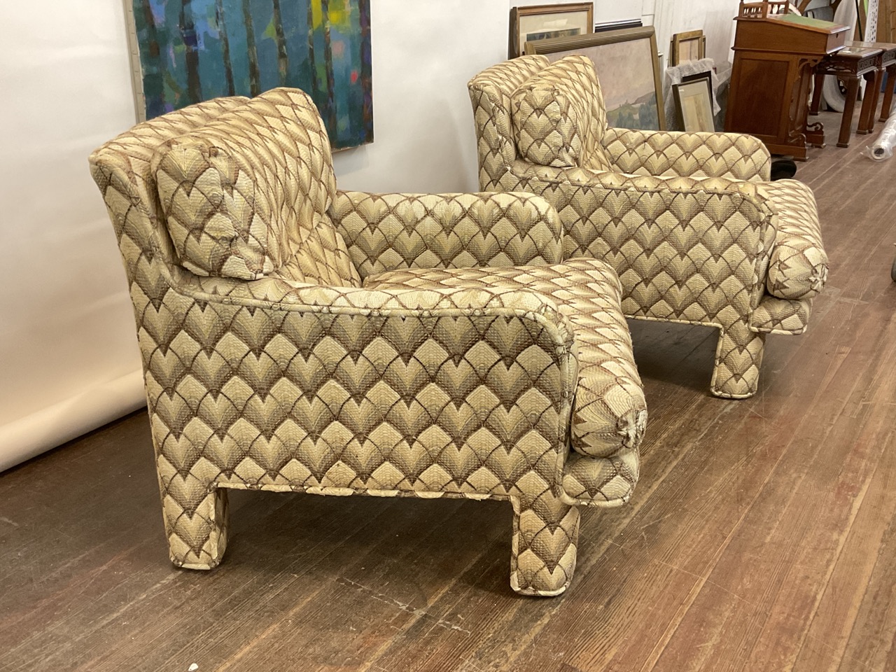A pair of Mid-20th century (1970's) upholstered armchairs.