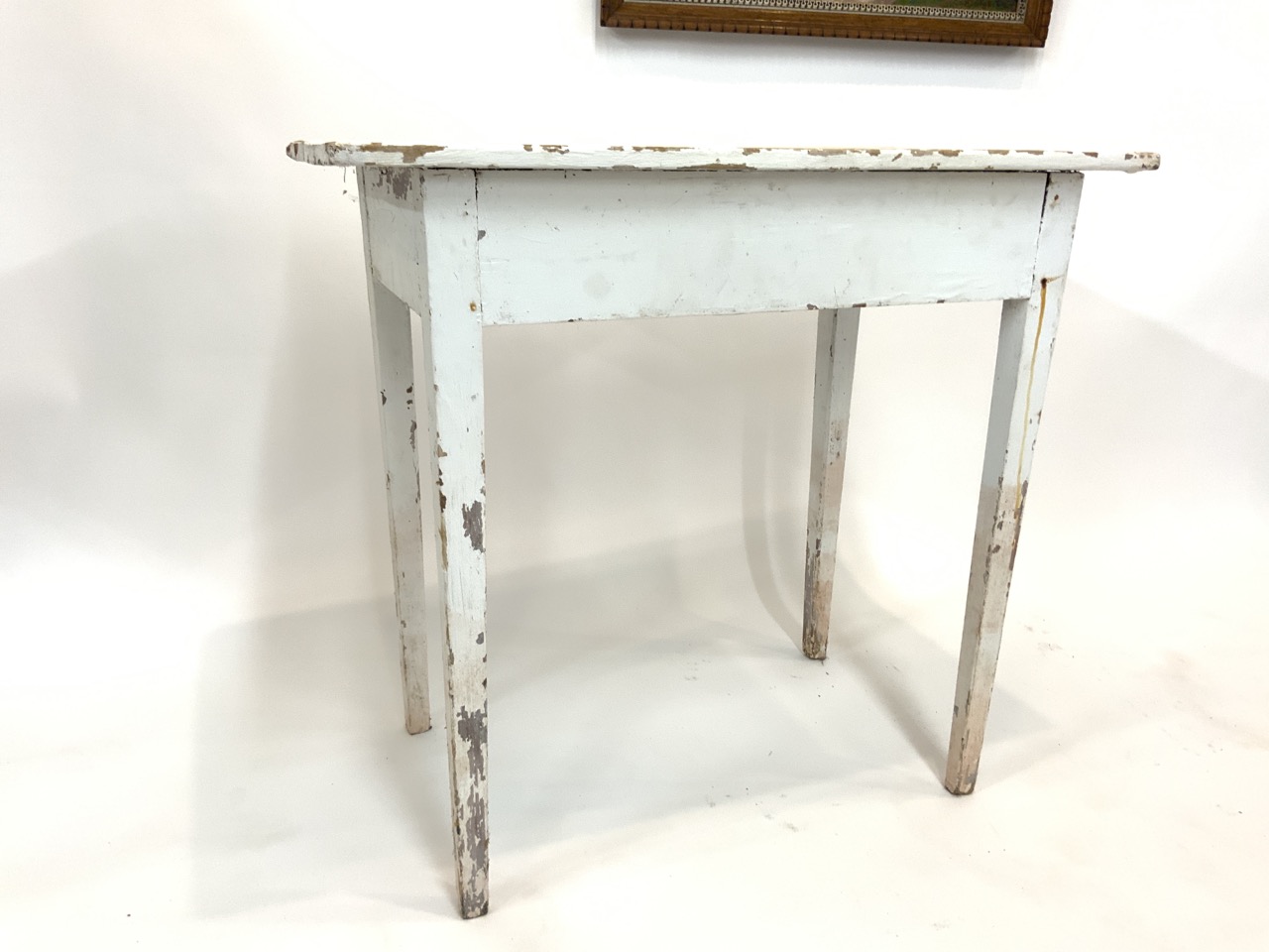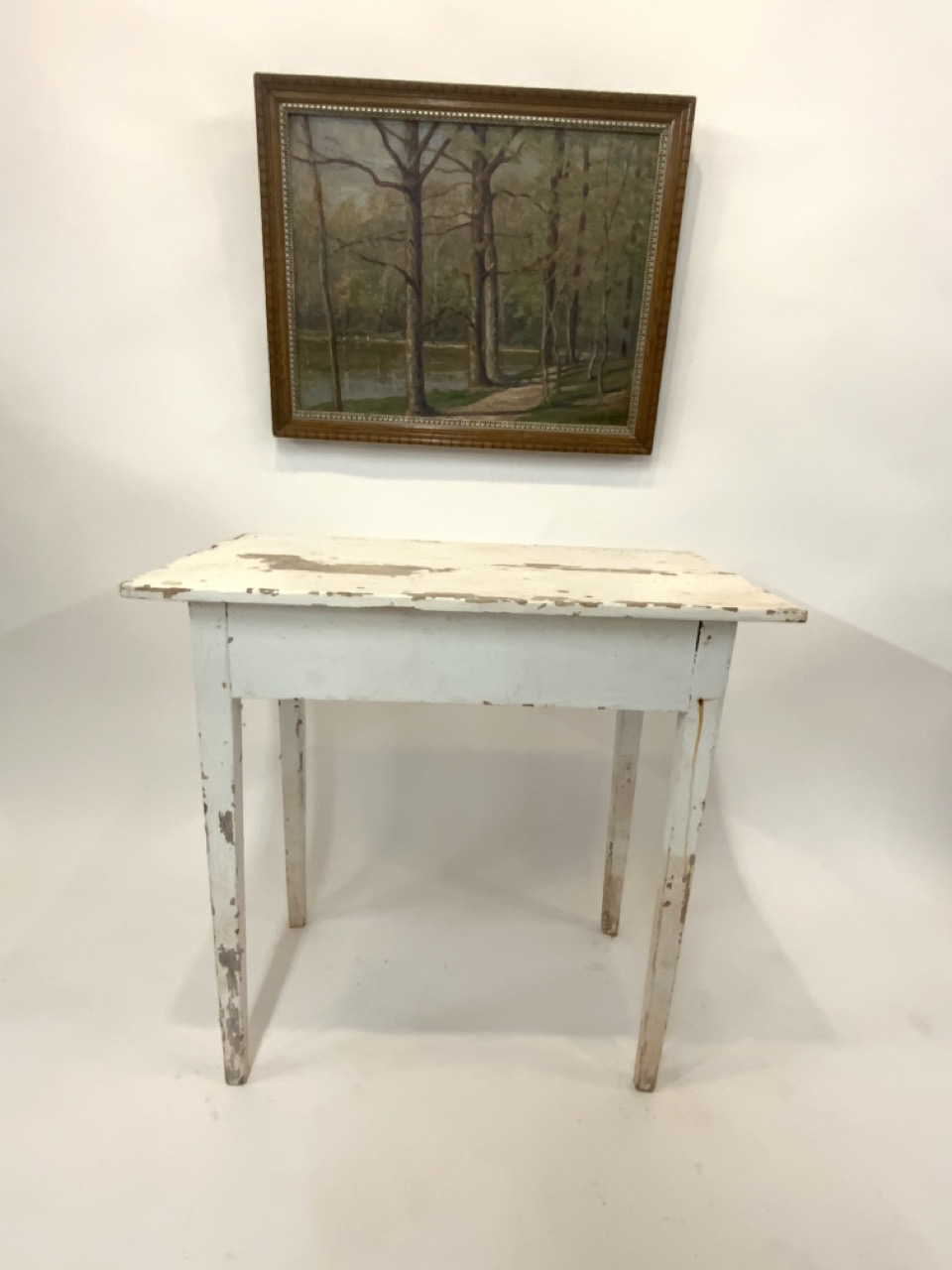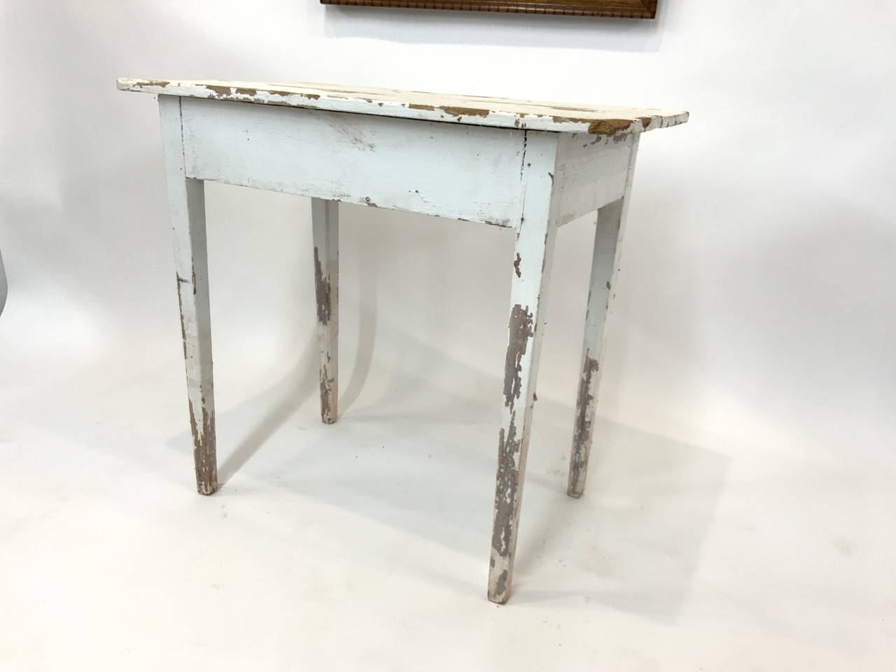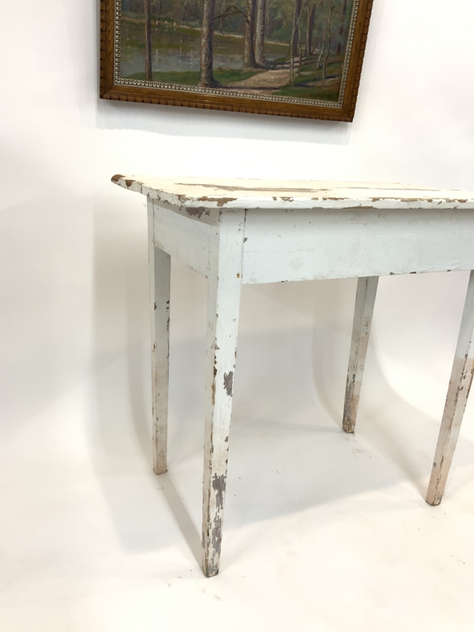A simple white peg leg pine table.