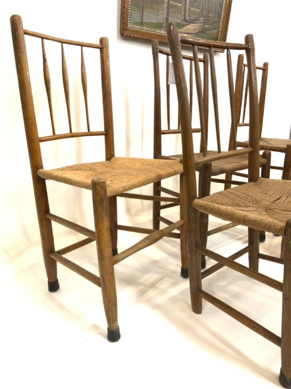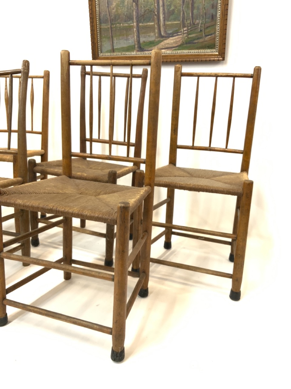 Five (5) Primitive Country Kitchen Chairs.
