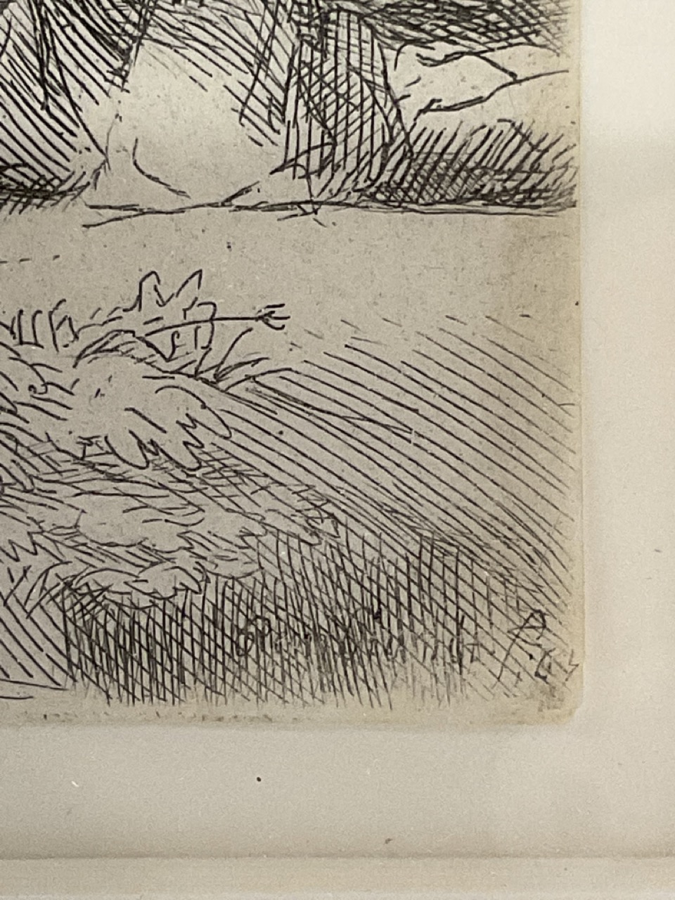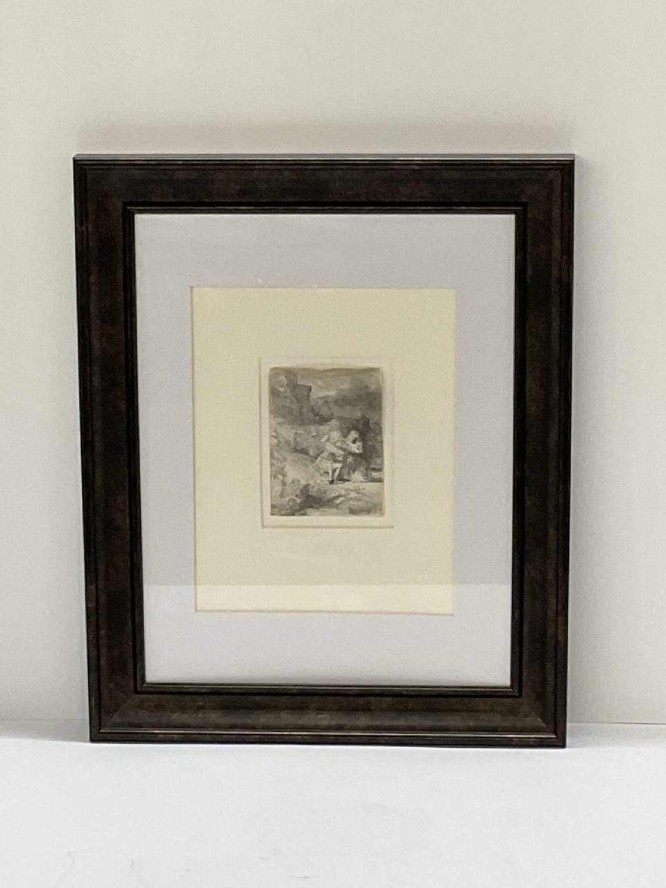 Dimensions: 4 1/4" X 3 1/4" and 17" X 14" framed.