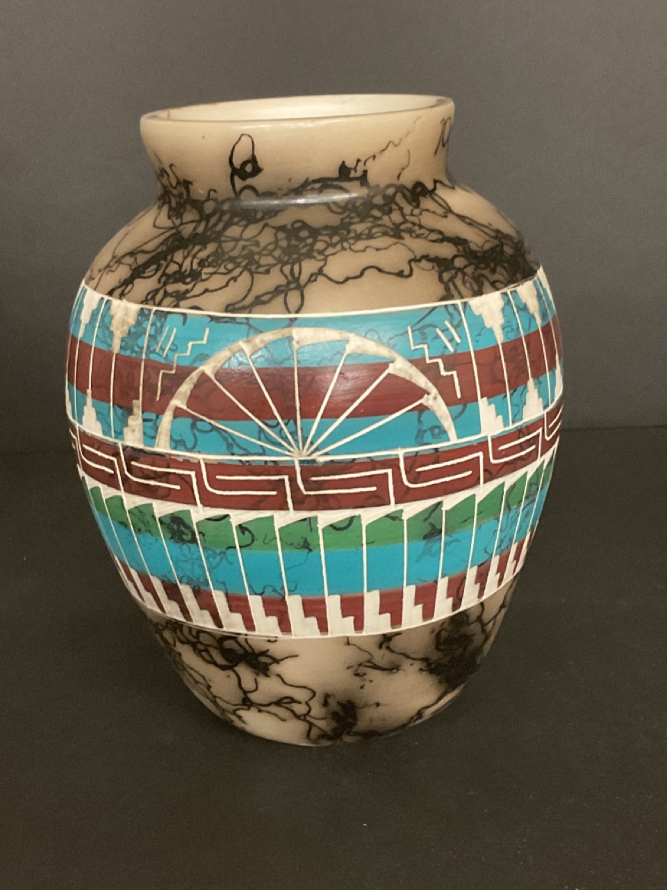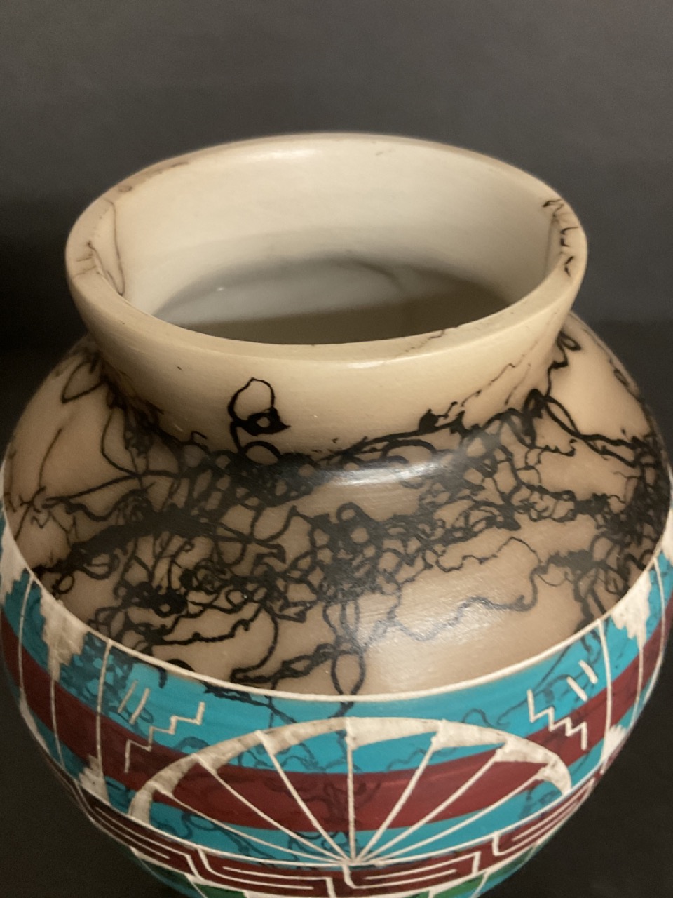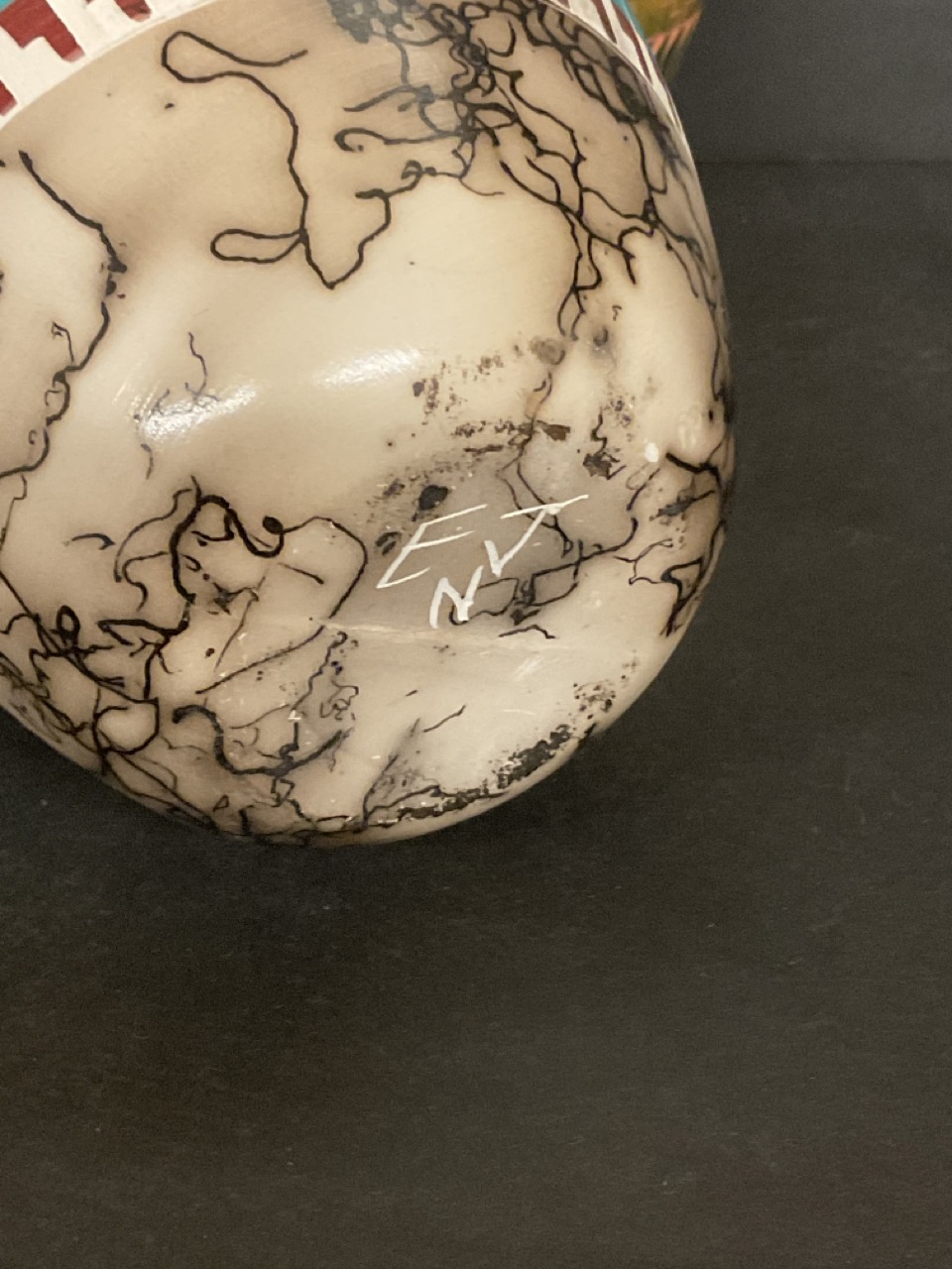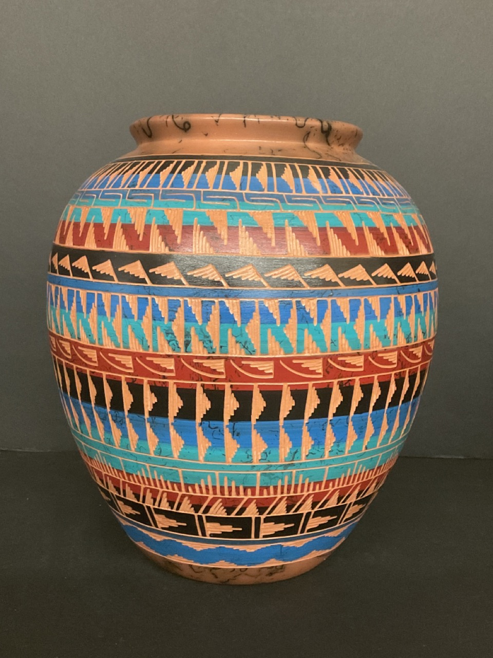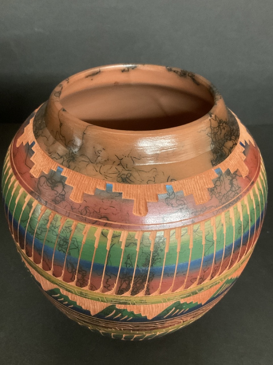 Three (3) Decorated Indian pottery pots. Signed at base.