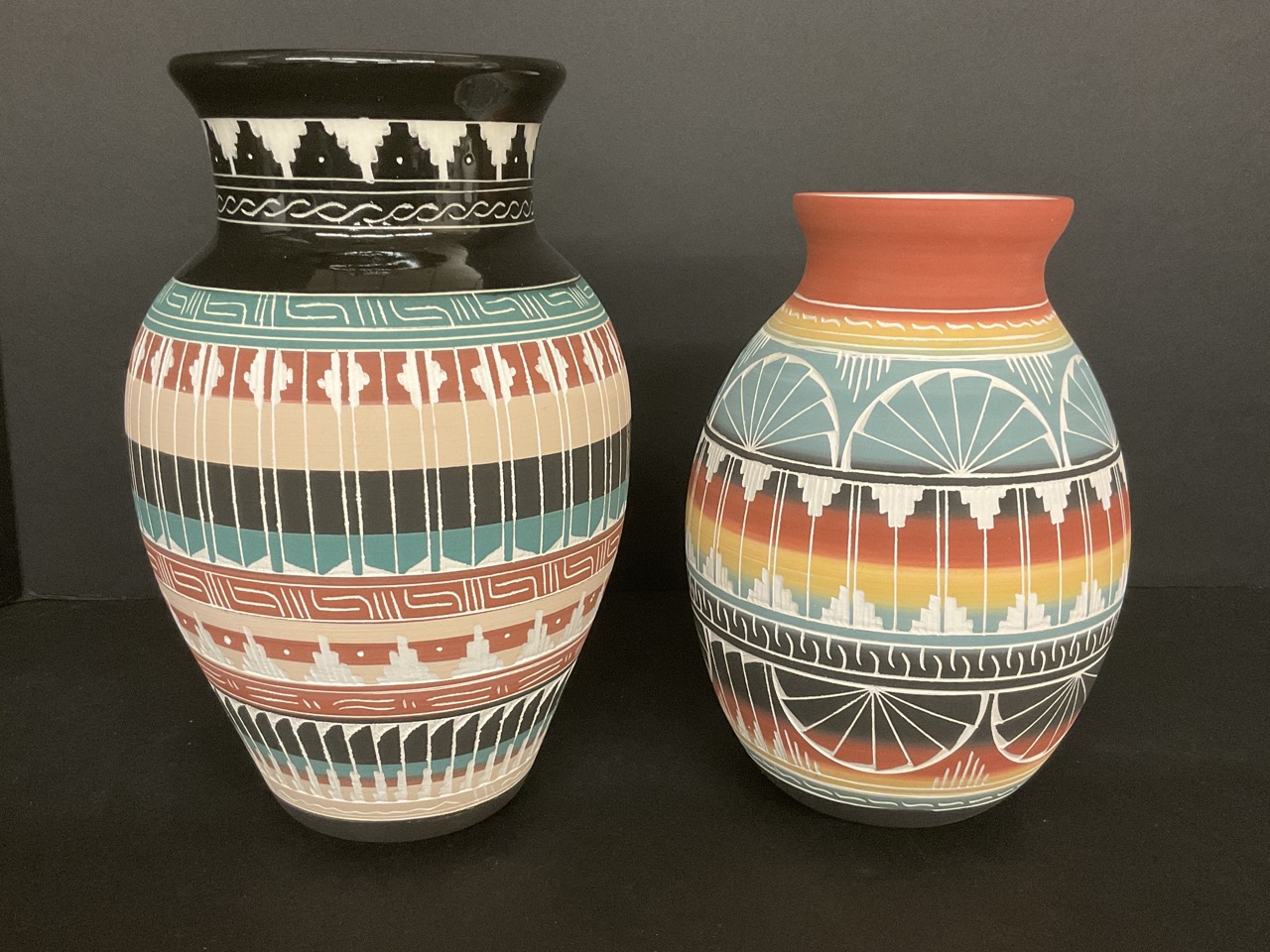 Two (2) Navaho American Indian Signed Pottery Pots.