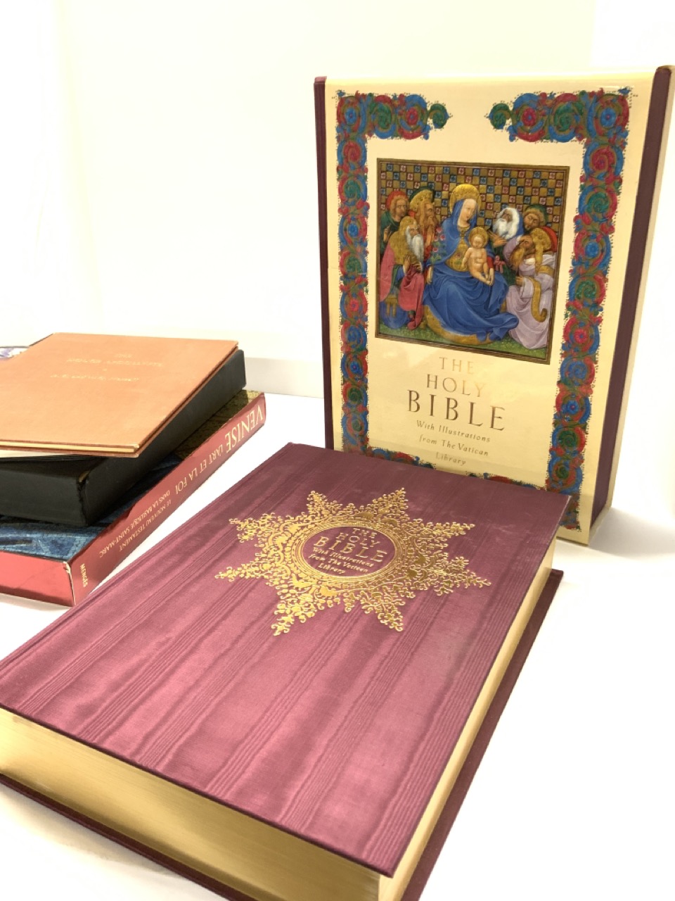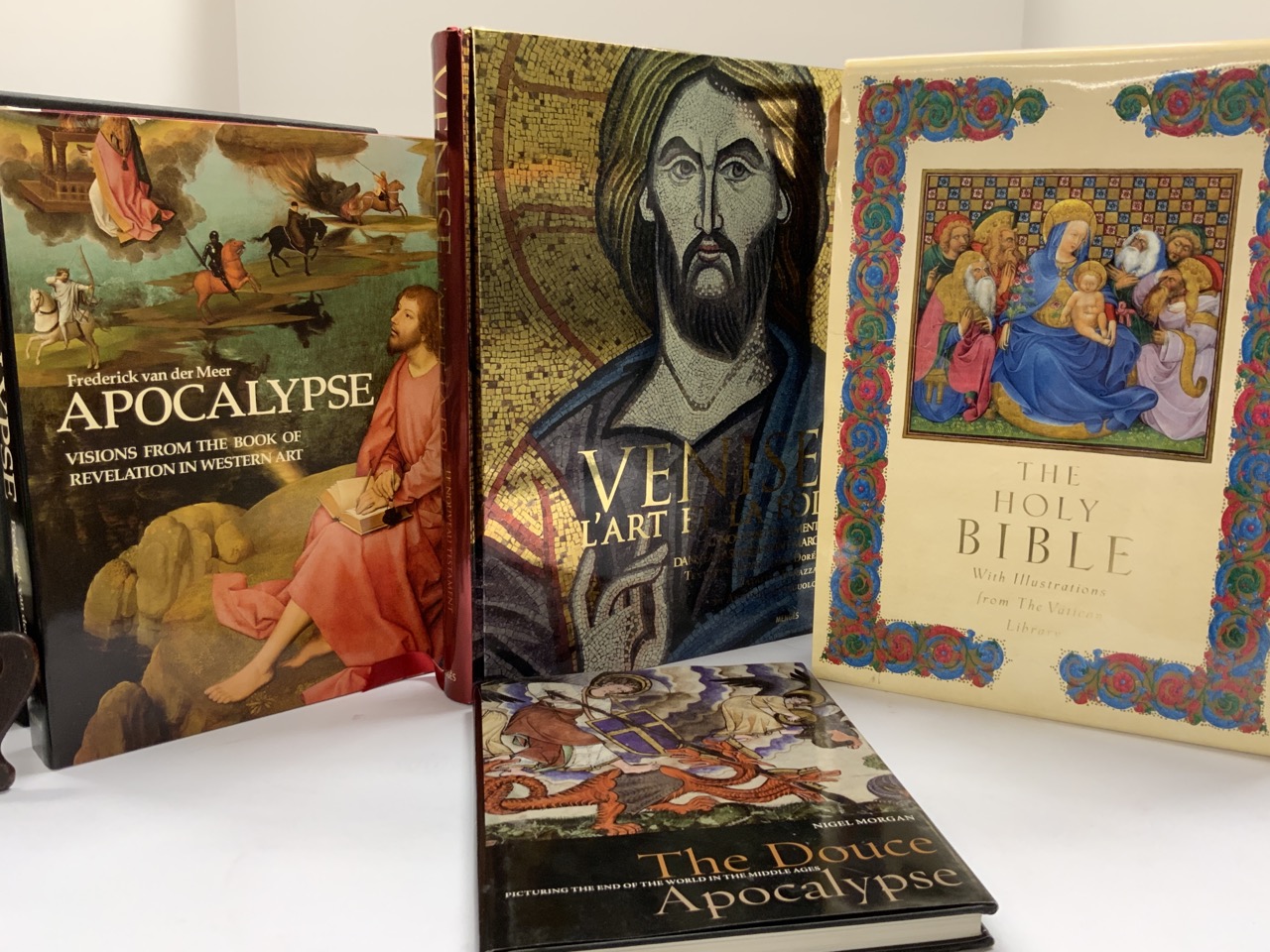 The Apocalypse, Van Der Meer, Frederick, Nigel Morgan, The Vatican Holy Bible, St. Mark Venizia New Testament of St. Mark. Fine editions and good condition.
