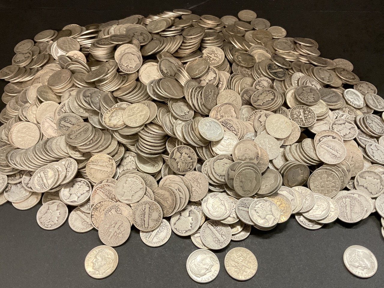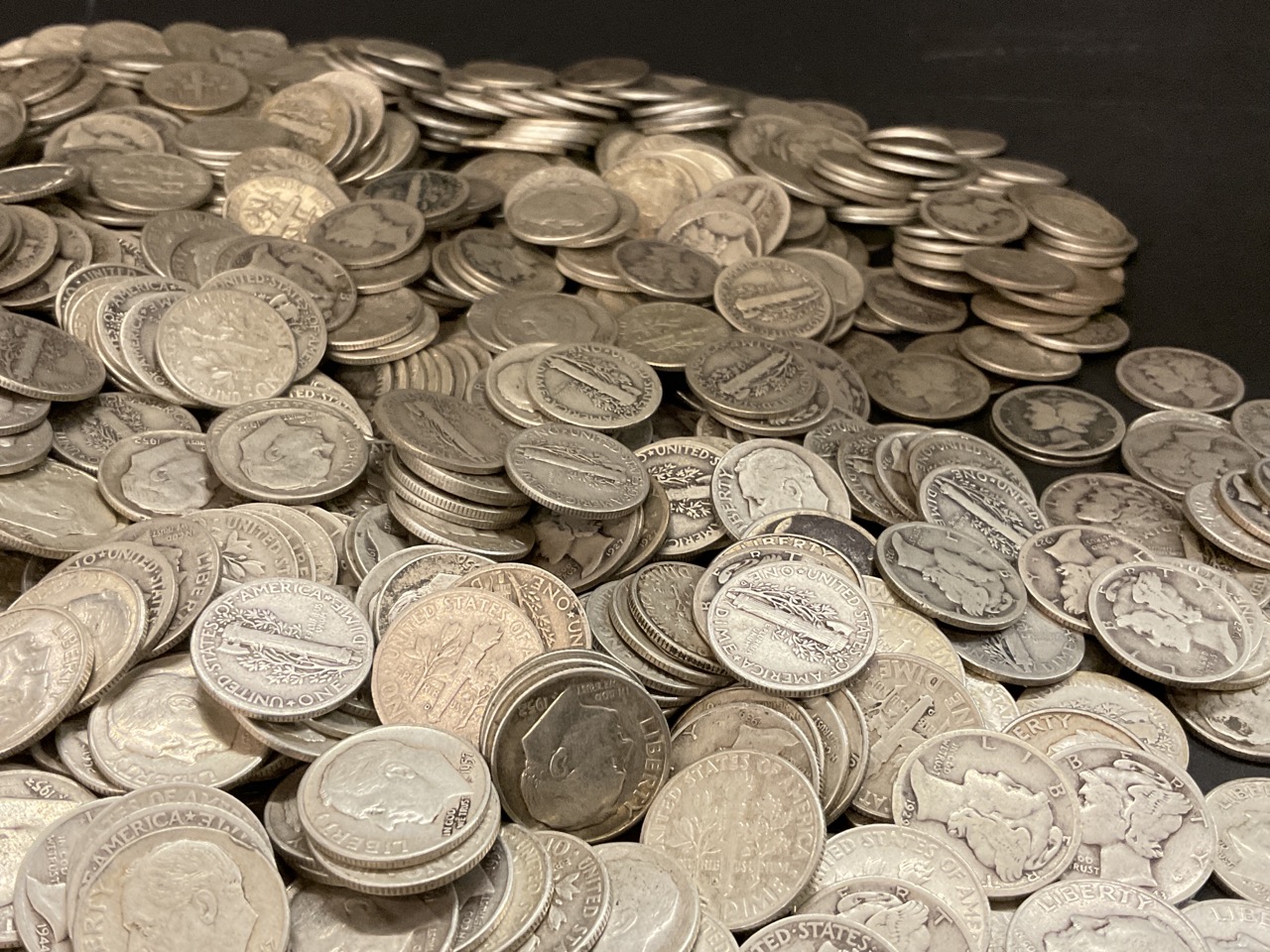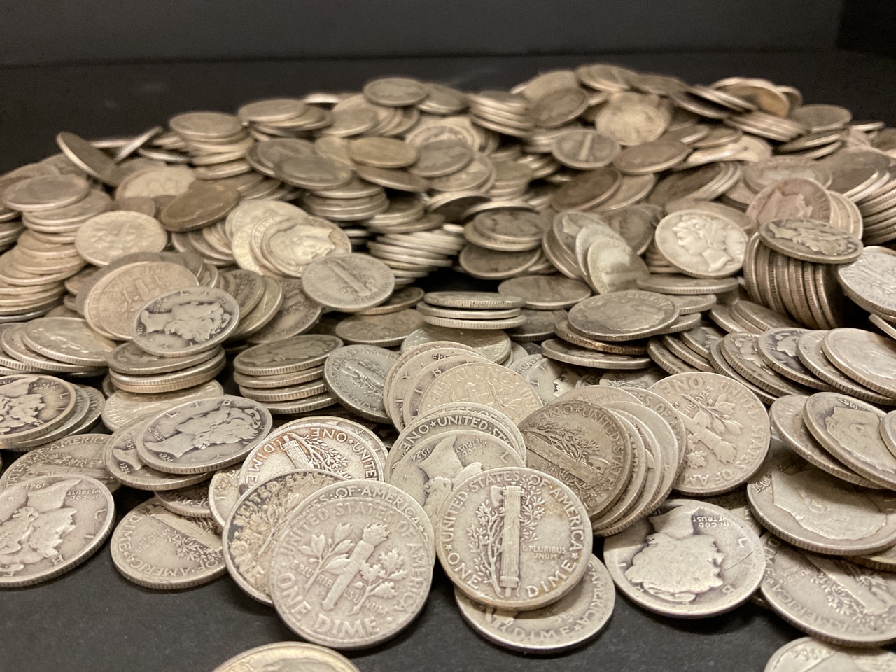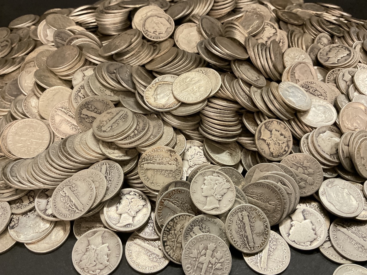 Estate collection of 8lbs 116.667 Troy Ounces of pre 1964 mercury, Roosevelt and Barber Dimes. 90% silver