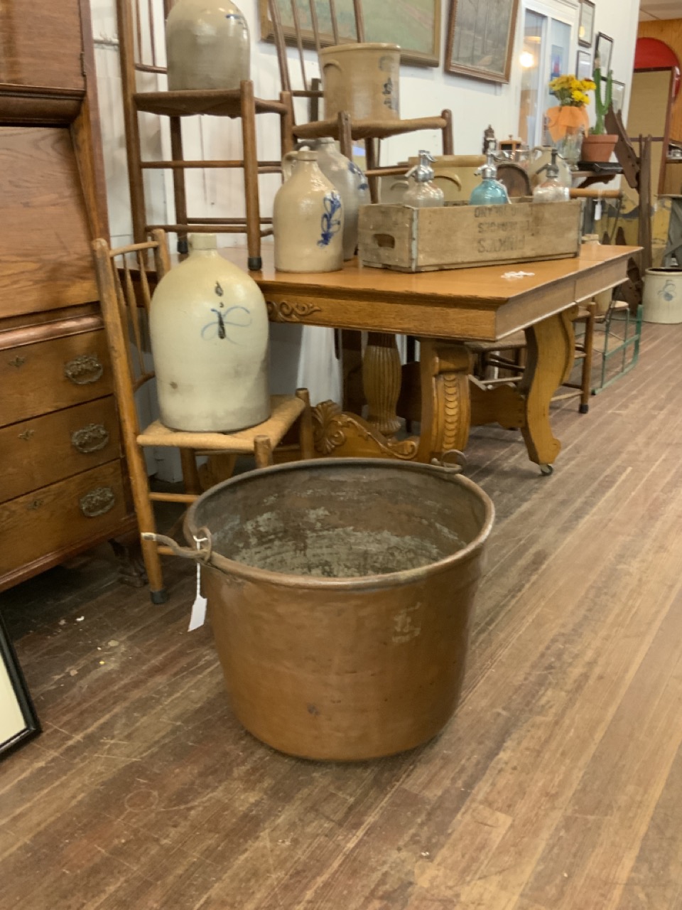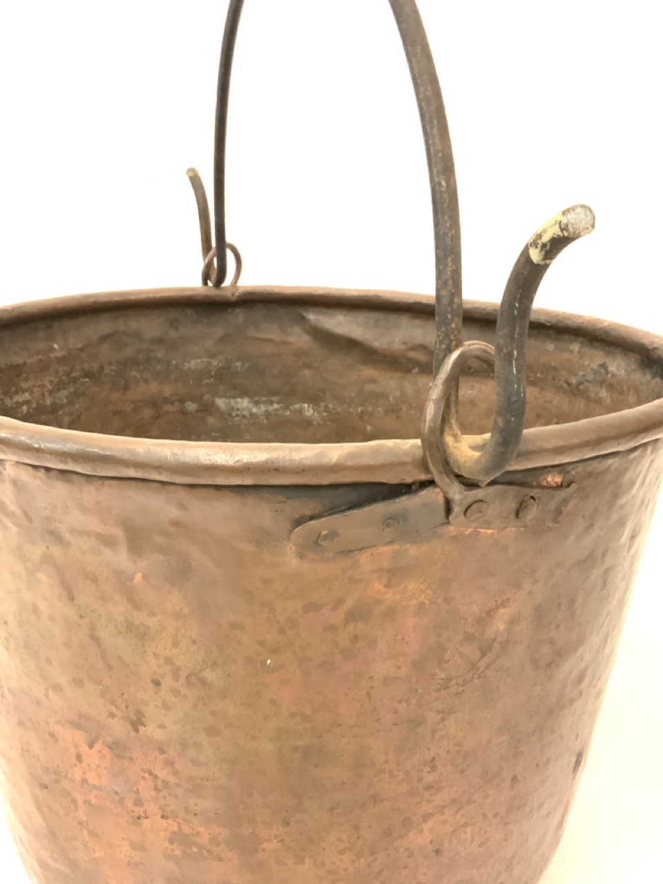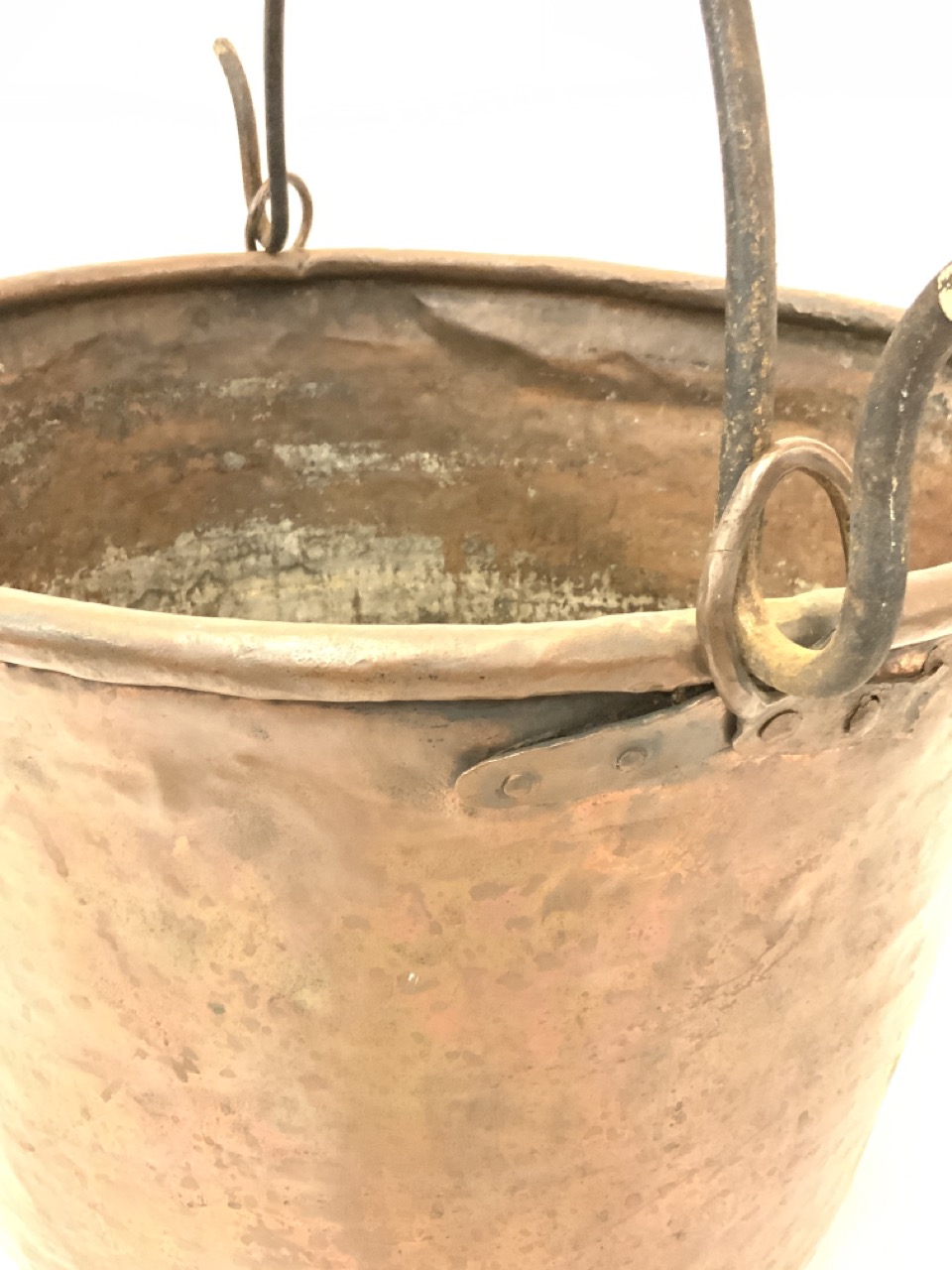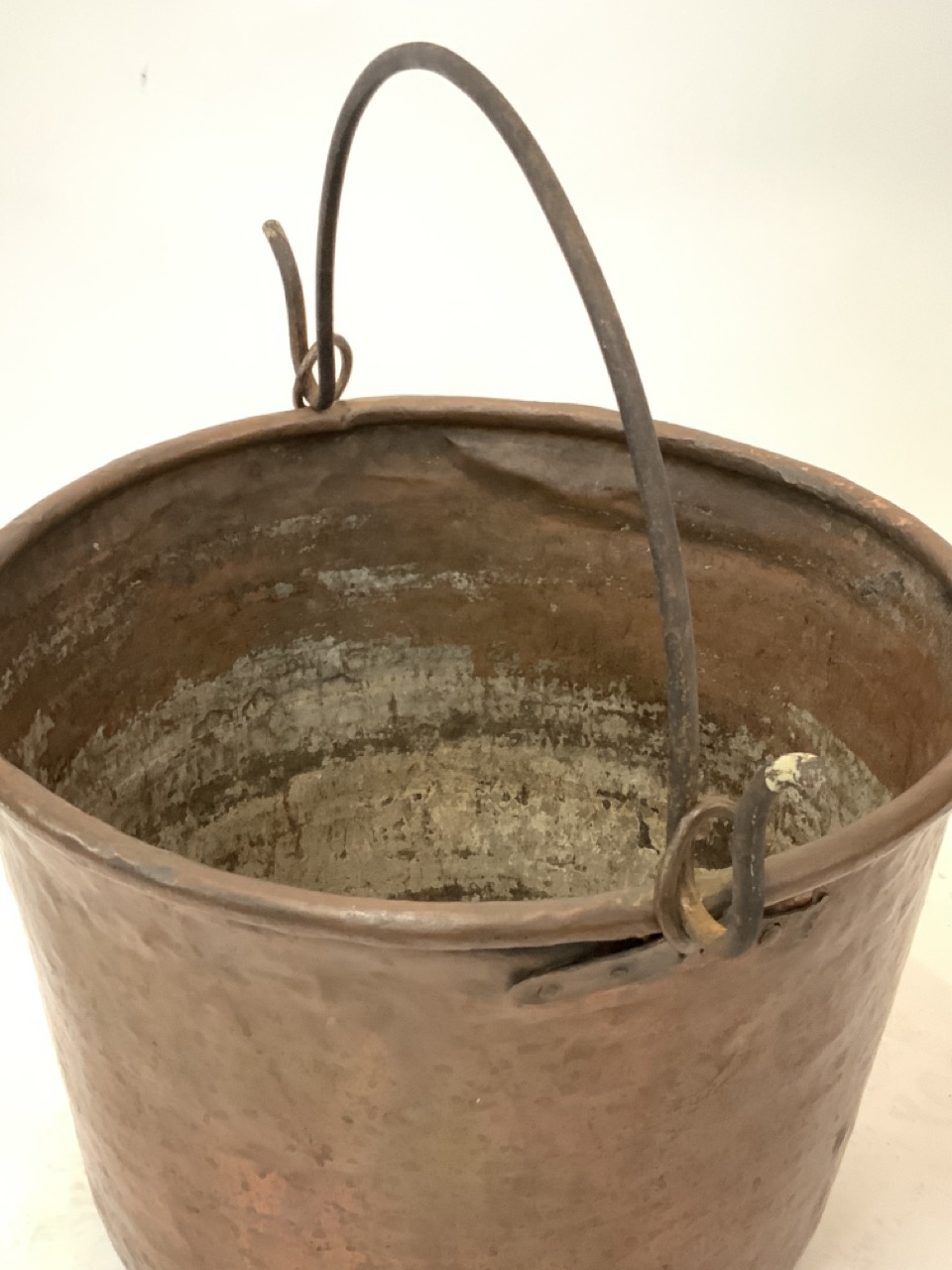 19th century copper pail or cauldron with iron handle.