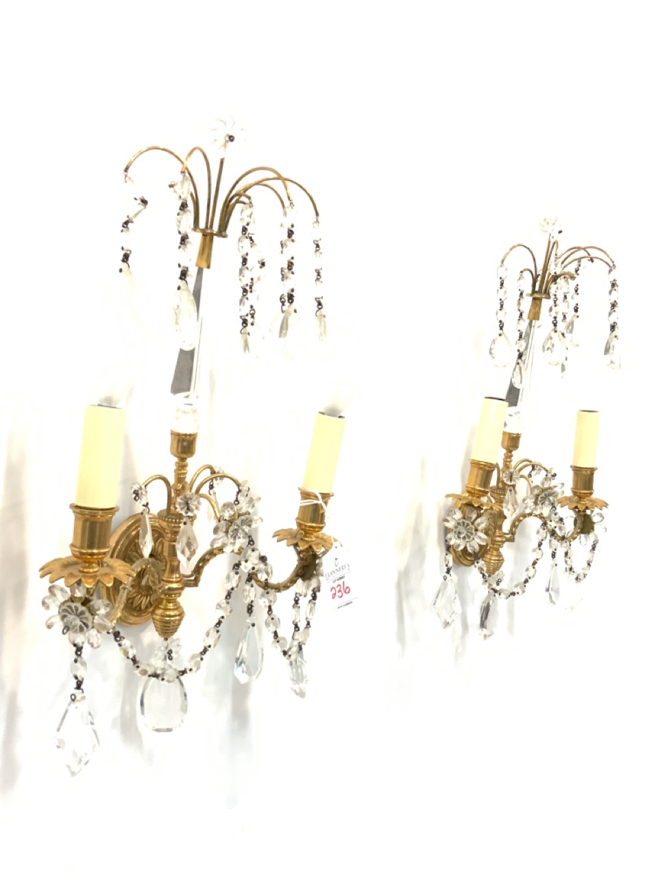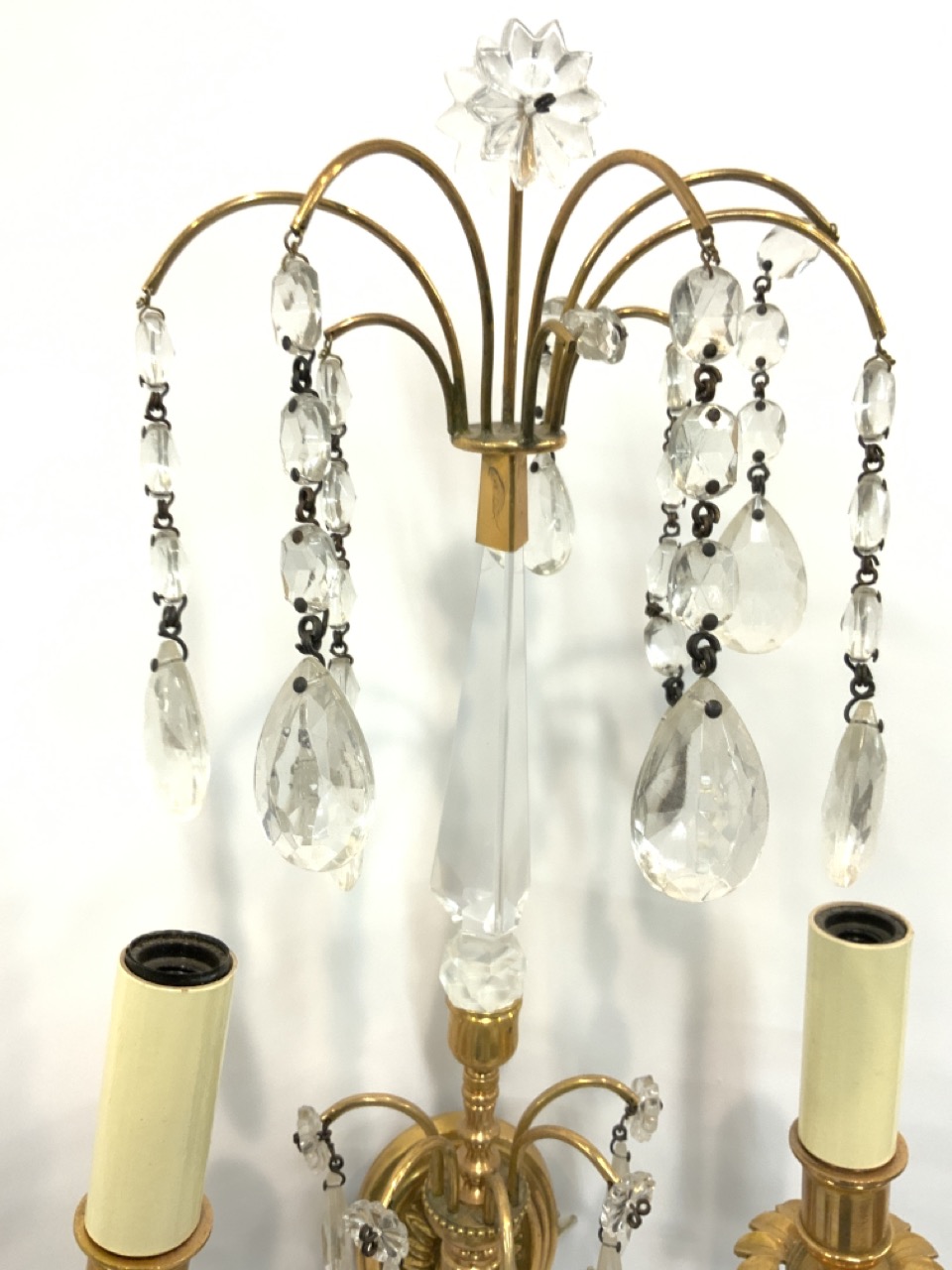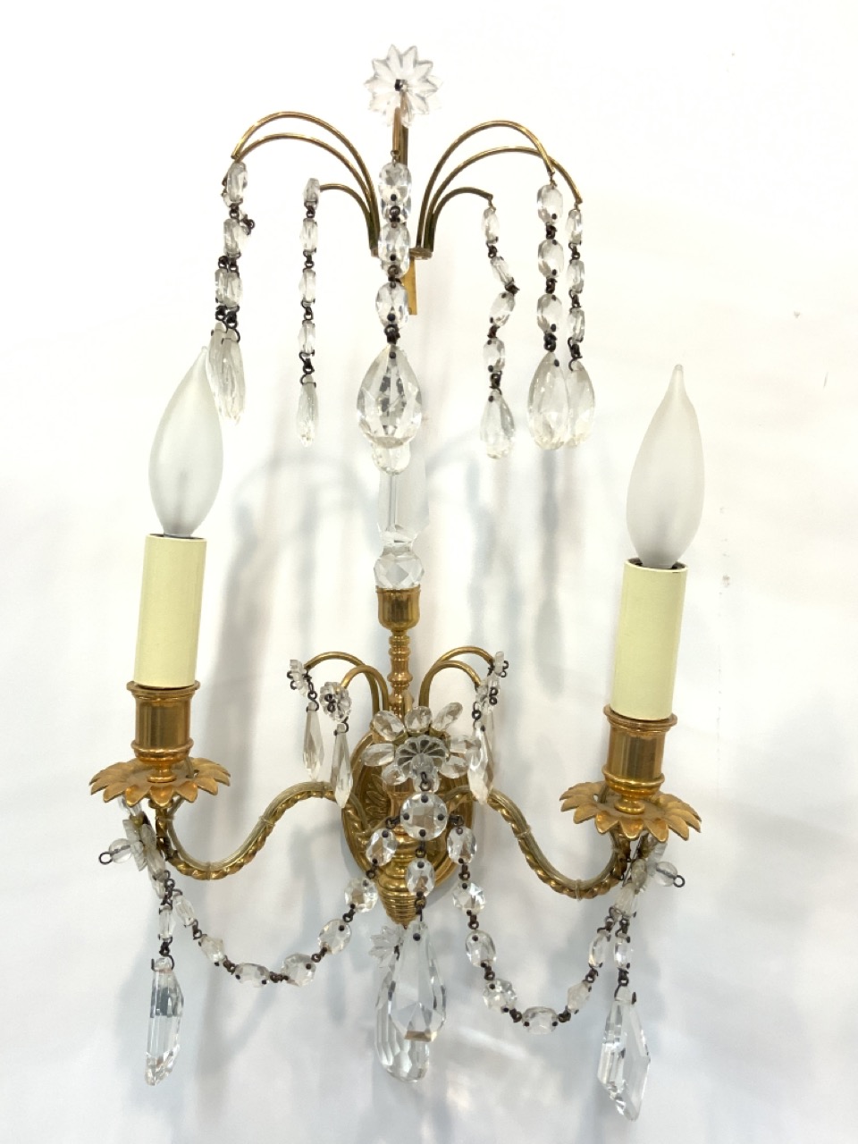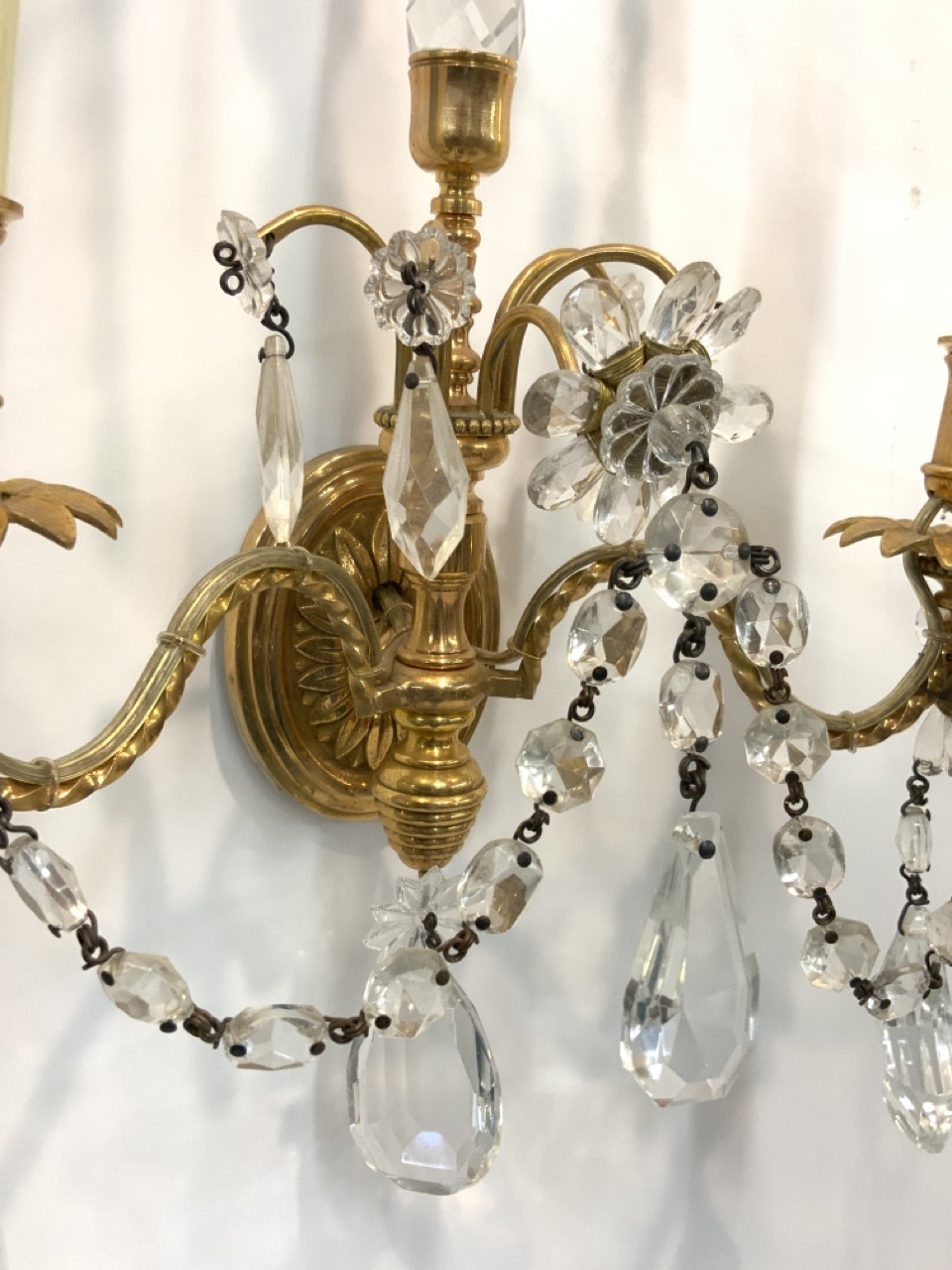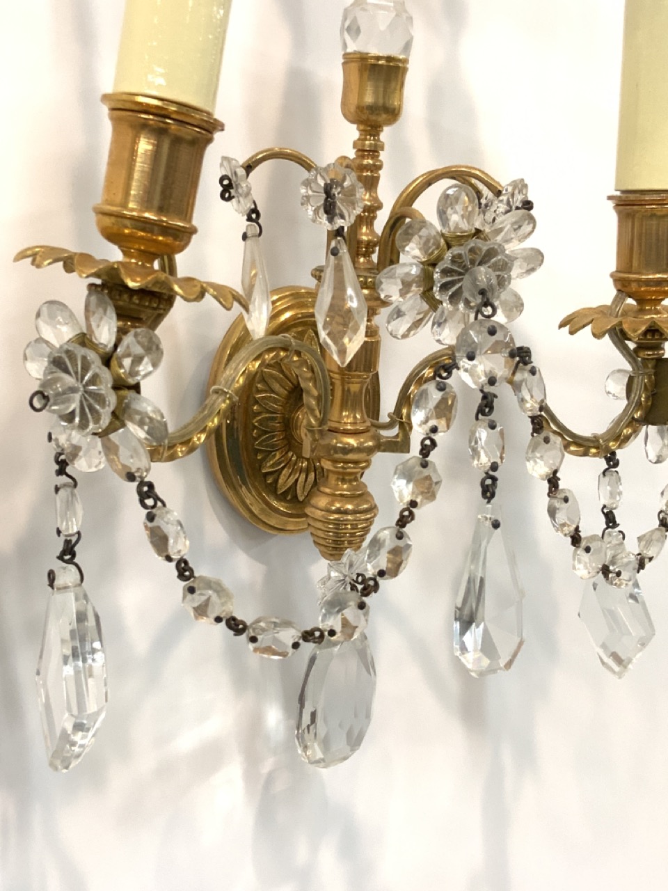 Very fine high quality bronze/brass and crystal wall sconces.