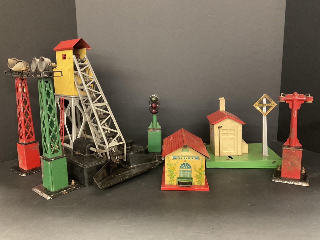 Lionell train call elevator, whistle station, automatic gate man, and lights.