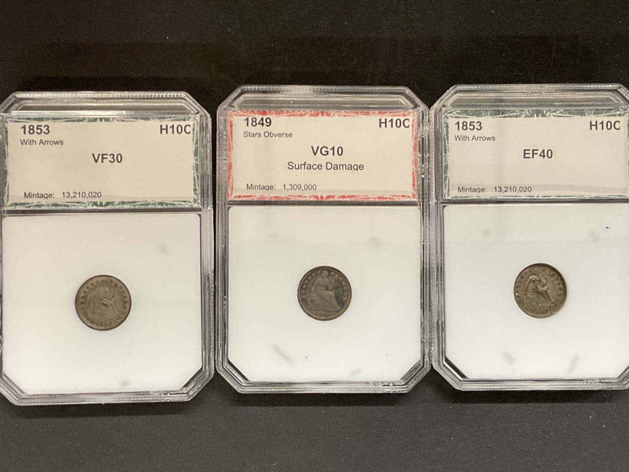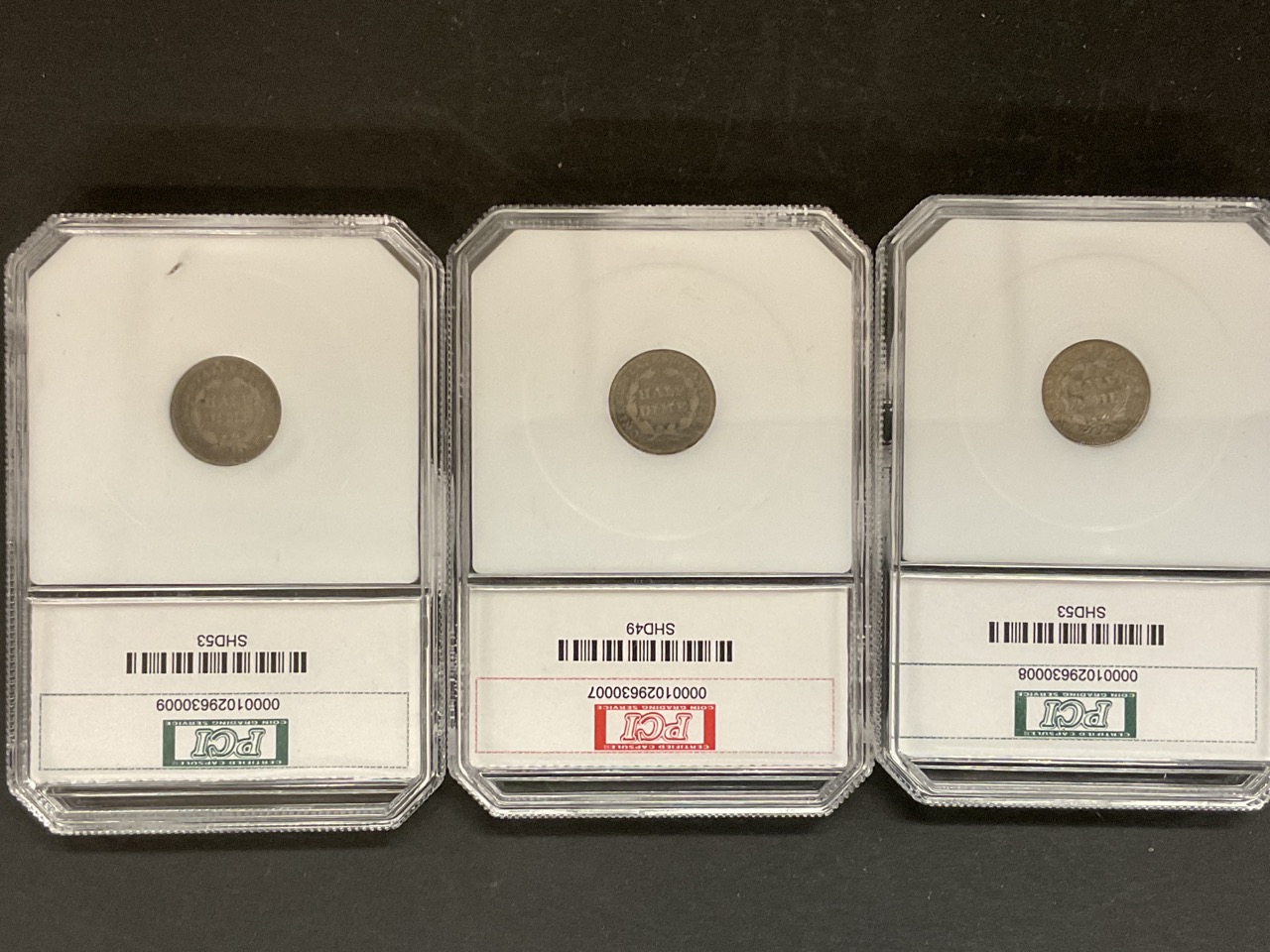 Three (3) U.S Half Dimes 1849;1853;1853 PCI