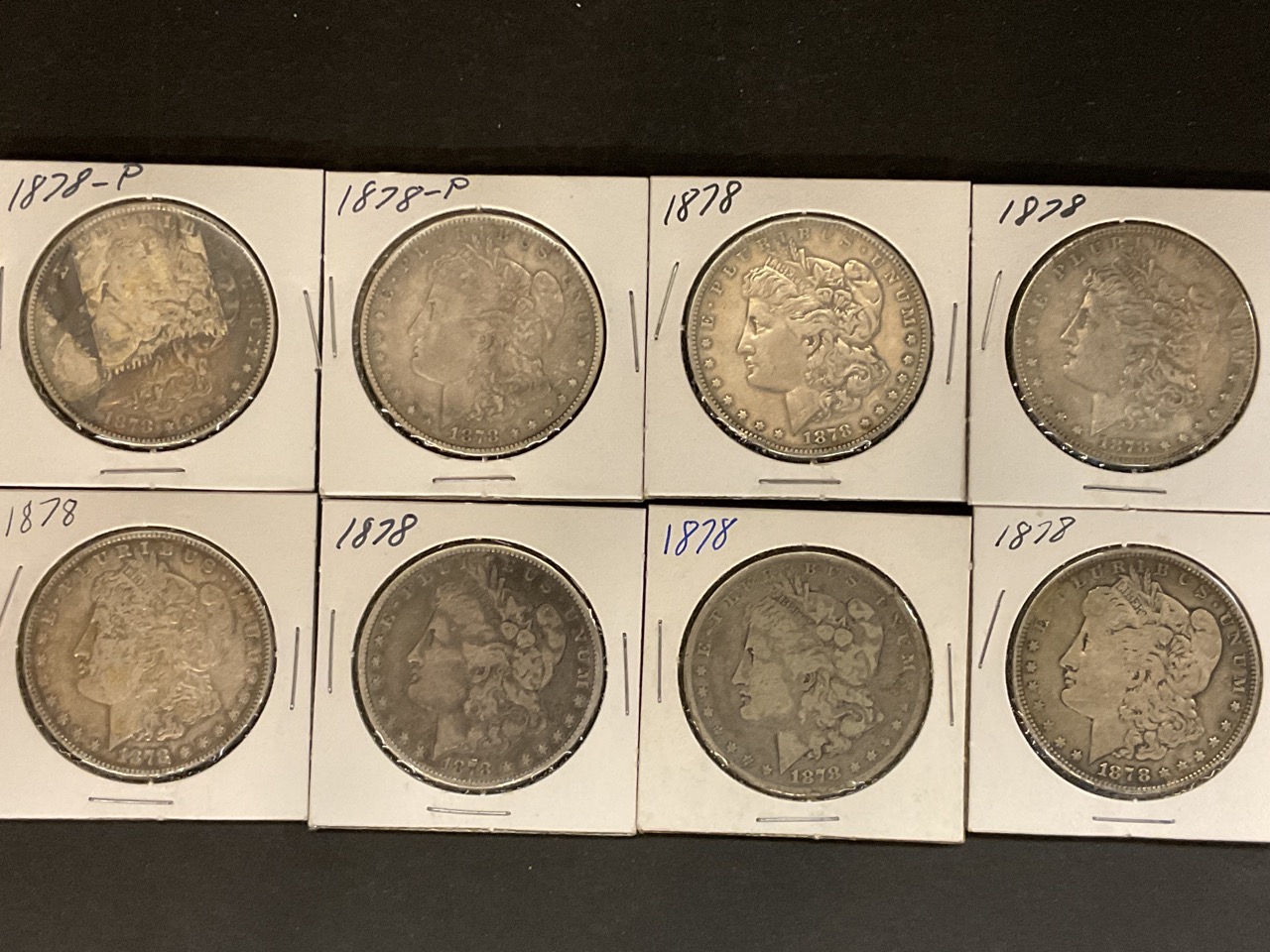 Eight (8) U.S. 1878 Morgan Silver Dollars .