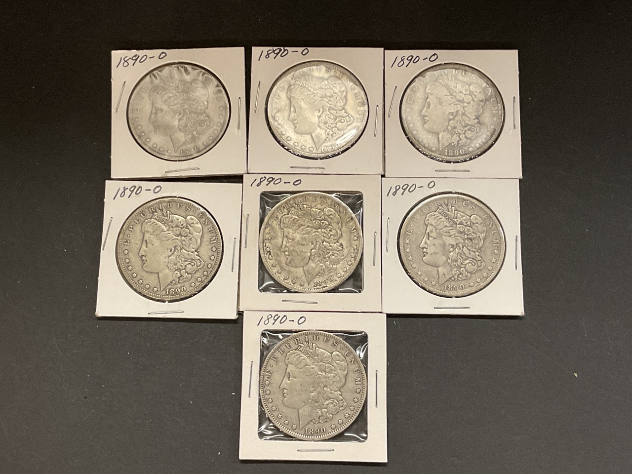 Seven (7) 1890-O U.S. Morgan Silver Dollars.
