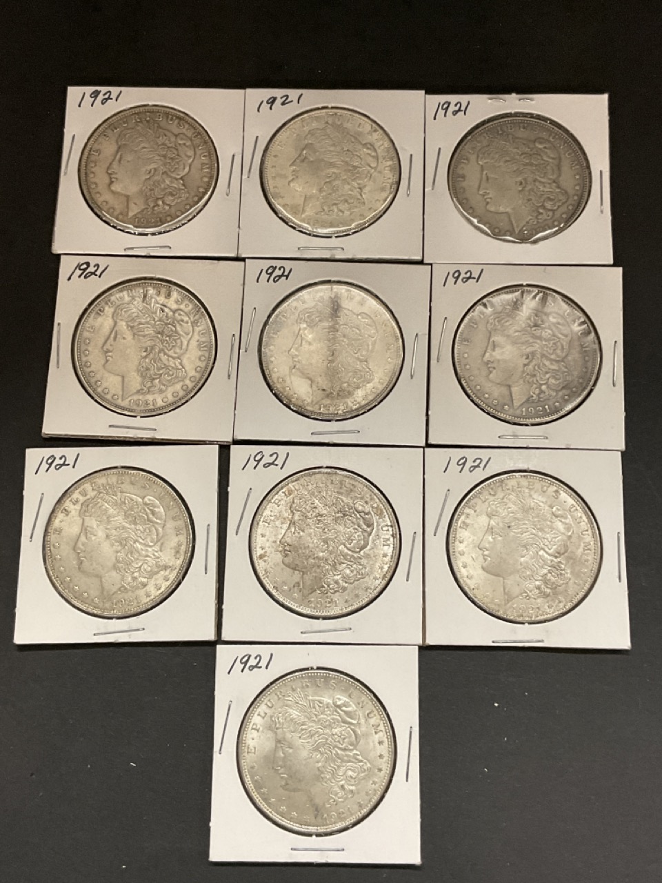 Ten (10) 1921-P U.S. Morgan Silver Dollars