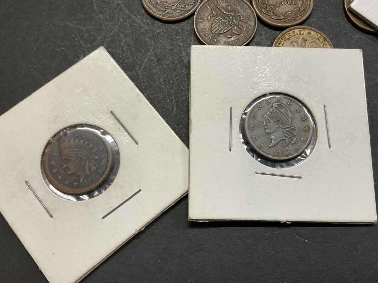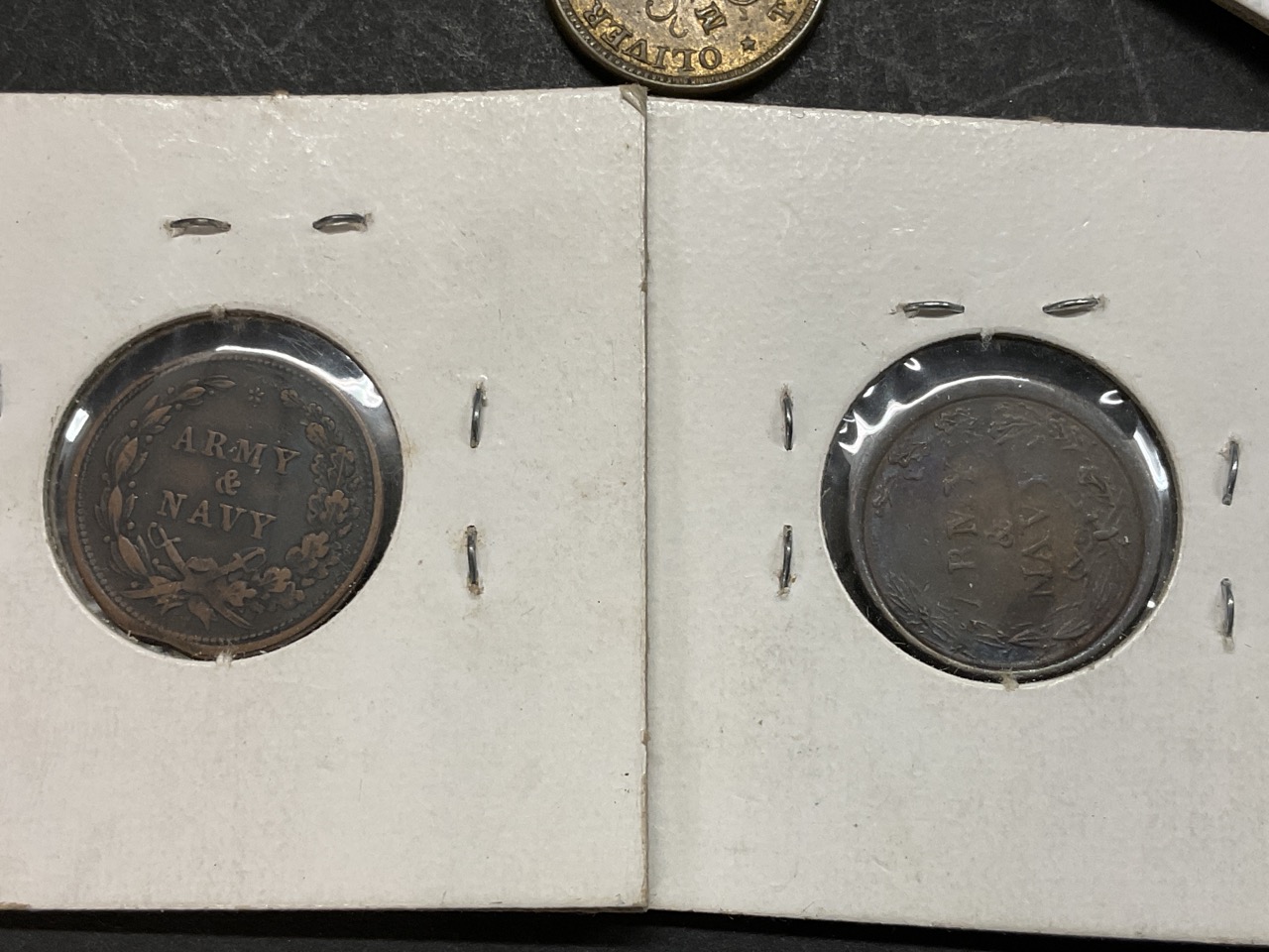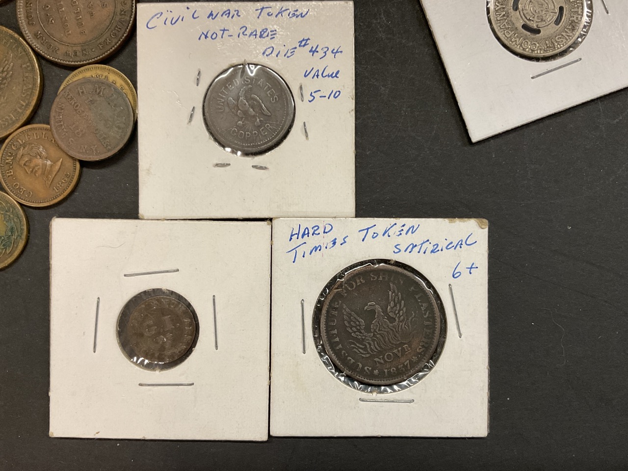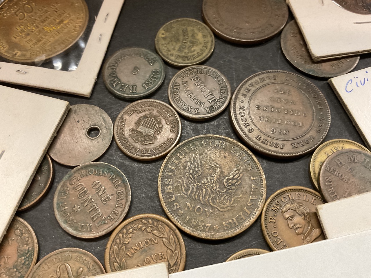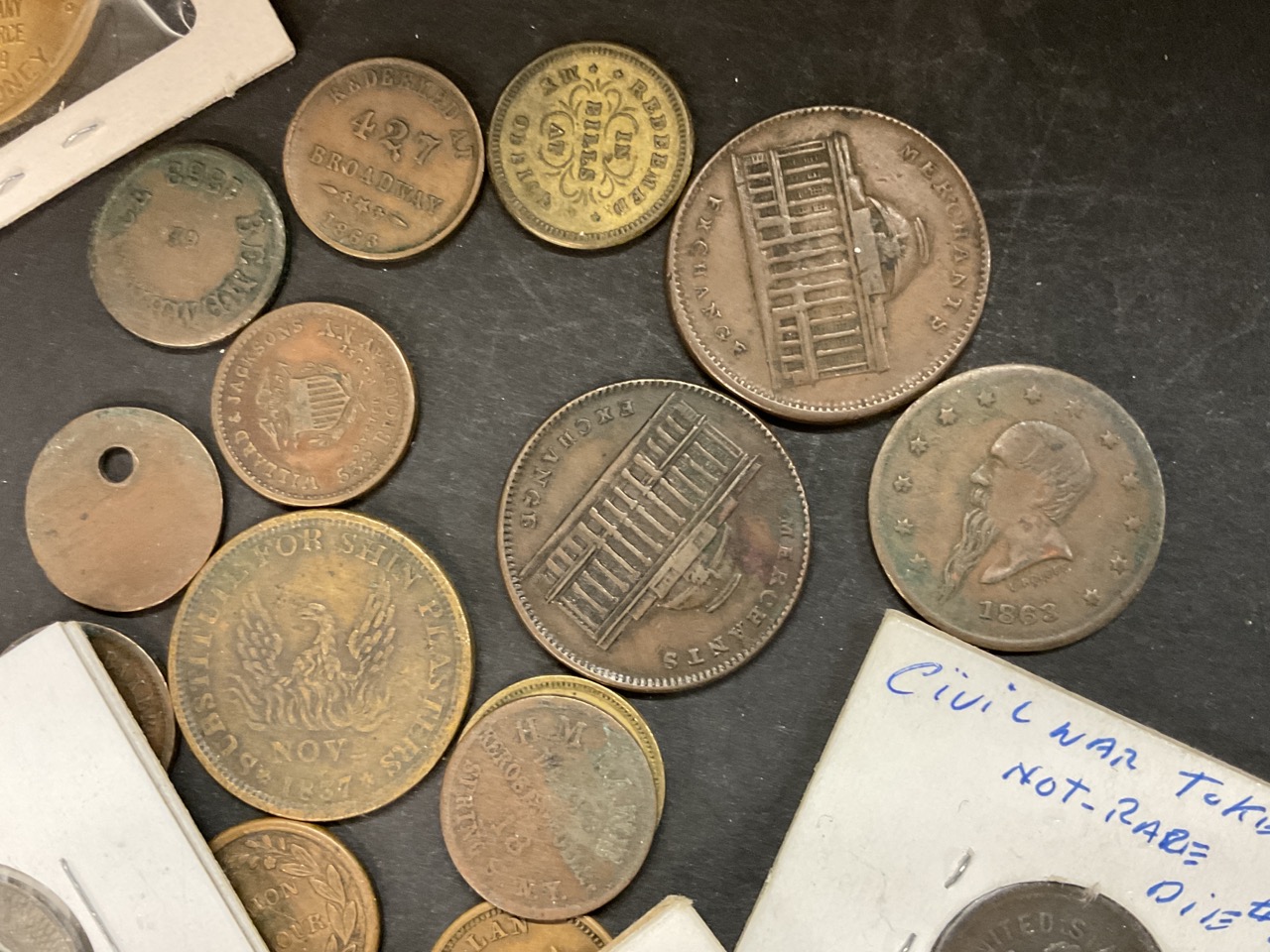 A great collection of U.S. Tokens. 1863 Army Navy Liberty, Civil War, Hard Times, Store, Transit Etc. Please see photograph preview.