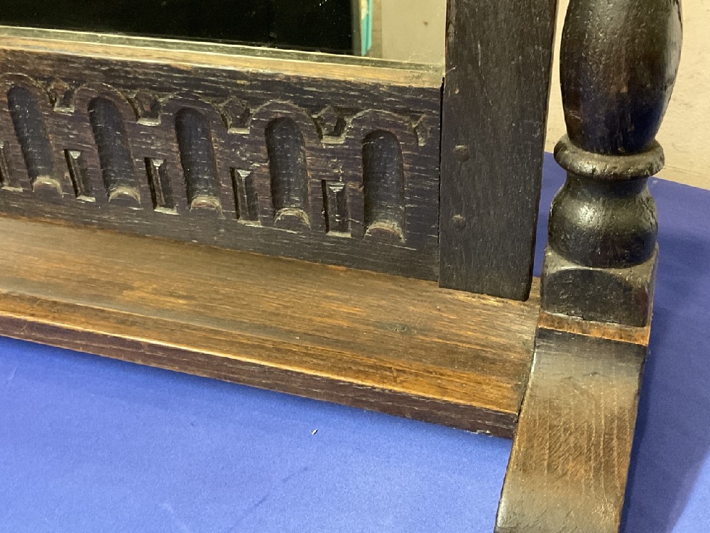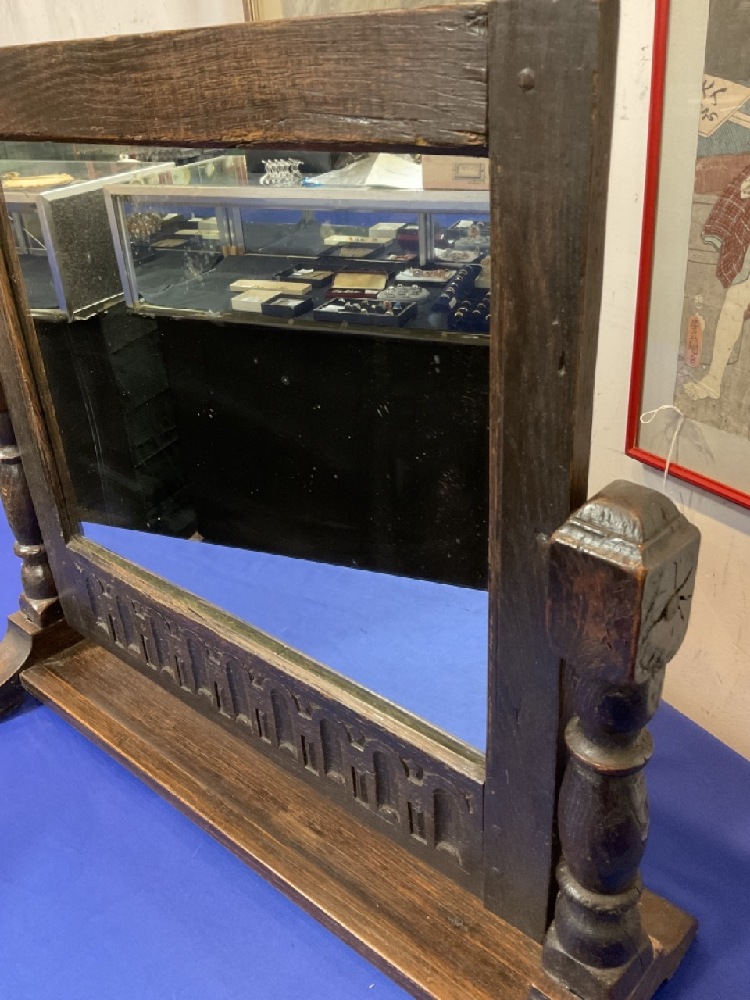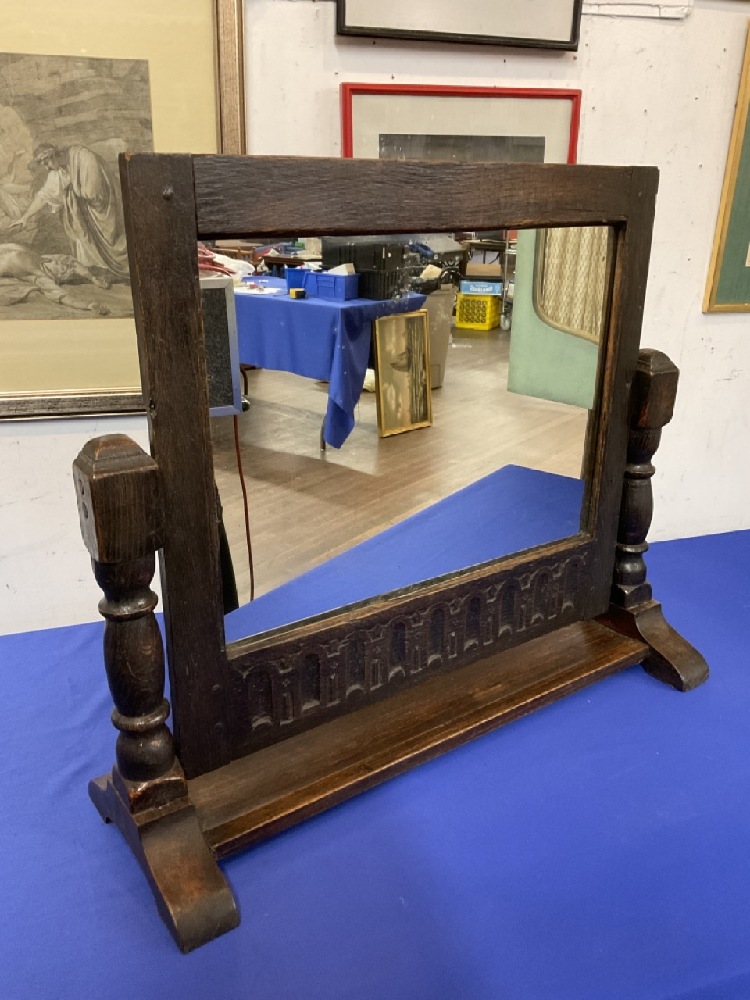 English Table Top Mirror. Dark Oak 19th century. Dimensions: 24” x 28” x 91/2”