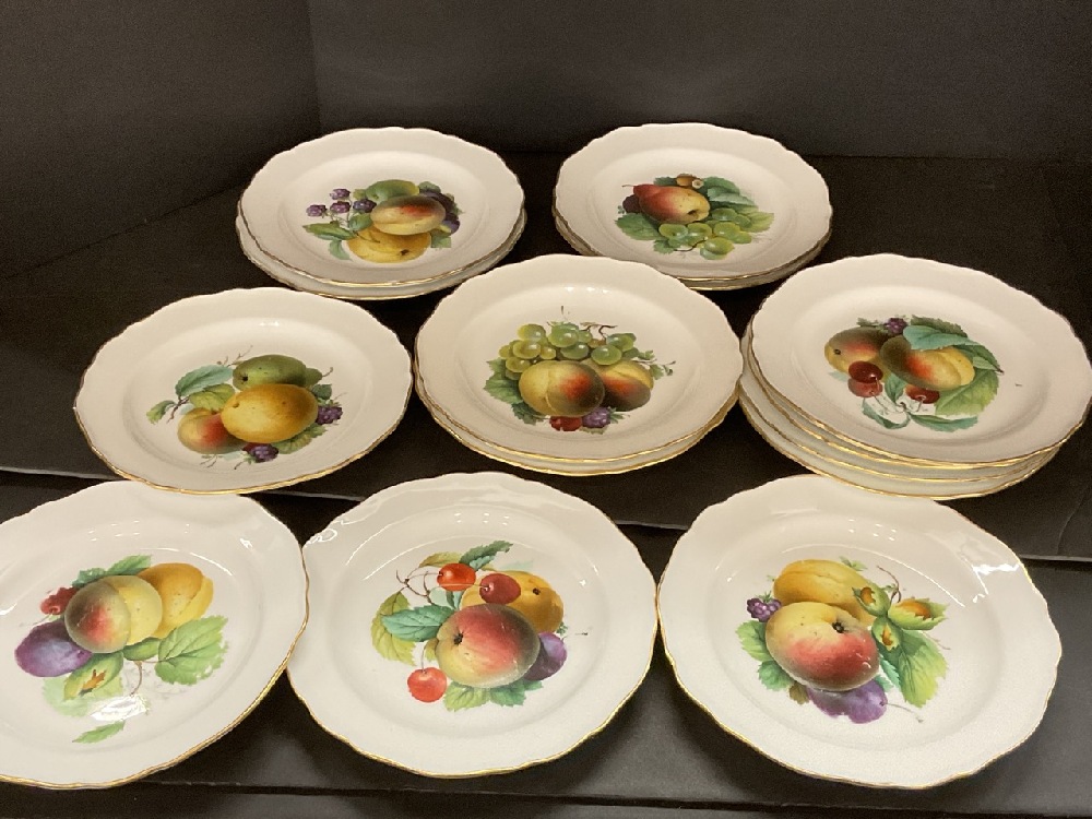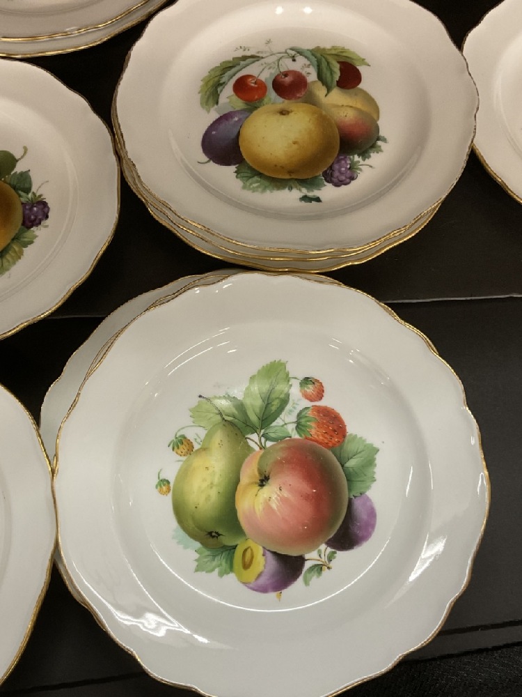 Fourteen (14) Meissen Fruit Plates. One has edge chips as seen in photograph preview and some loss to decoration from use. Overall a very fine set.
