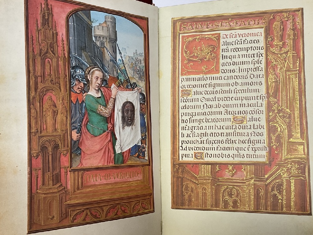 Rothschild-Gebetbuch Illuminated Manuscript Prayer Book. Housed in a slip case. Red velvet hardcoverd boards with commentary in German, separate. Very fine codition. Trankler, Ernst 1902, Catholic Church Book Of Hours 1979