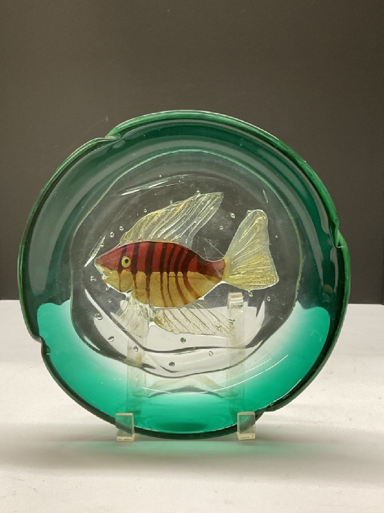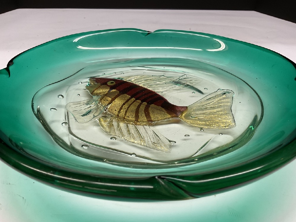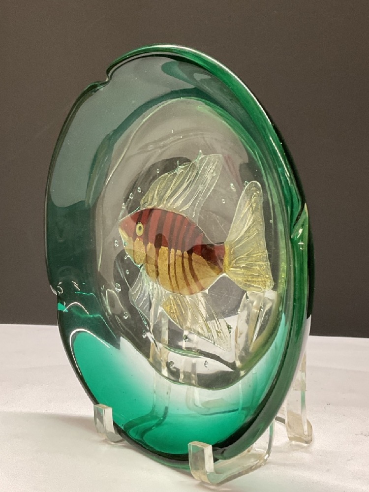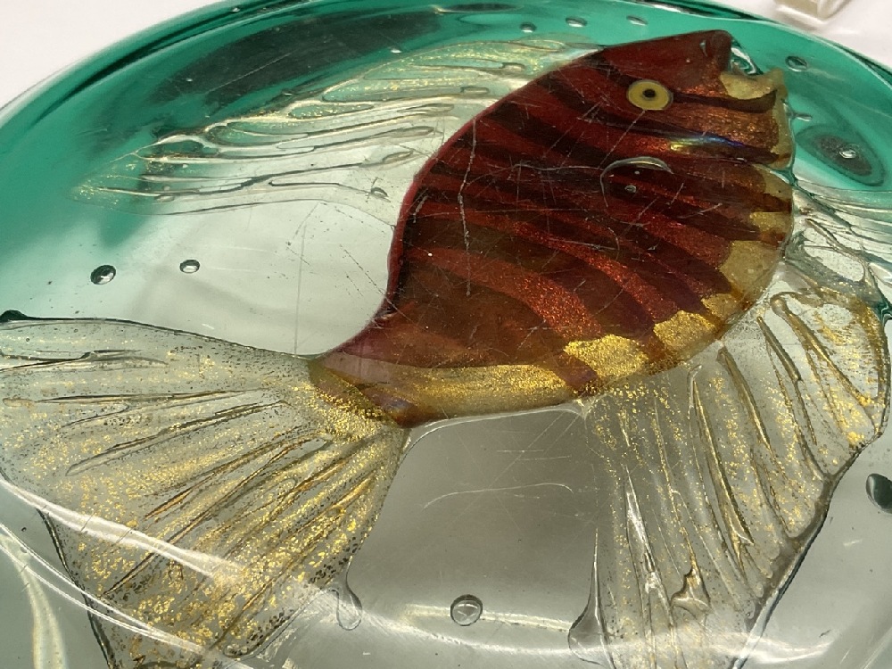 Murano art glass vintage fish bowl. Some surface scratches to base as seen in photograph preview.