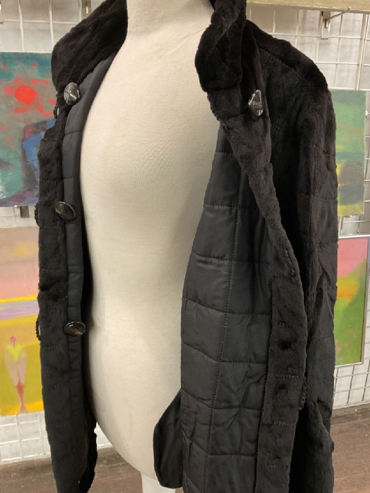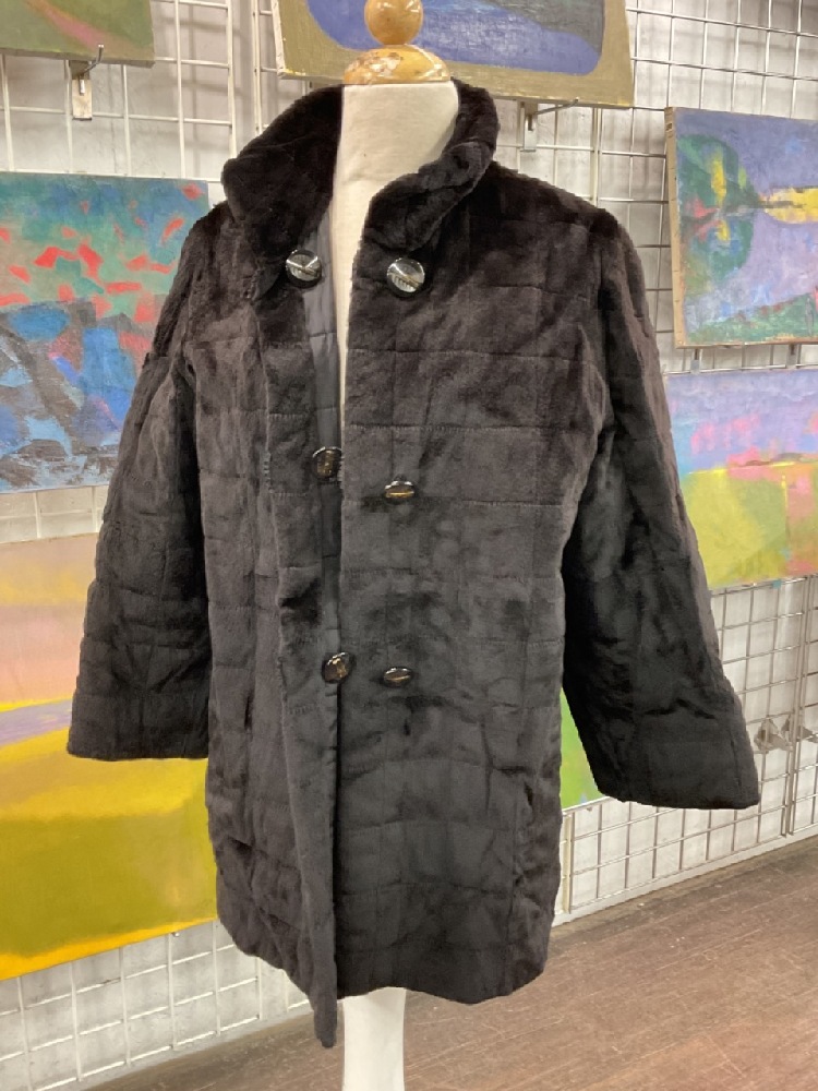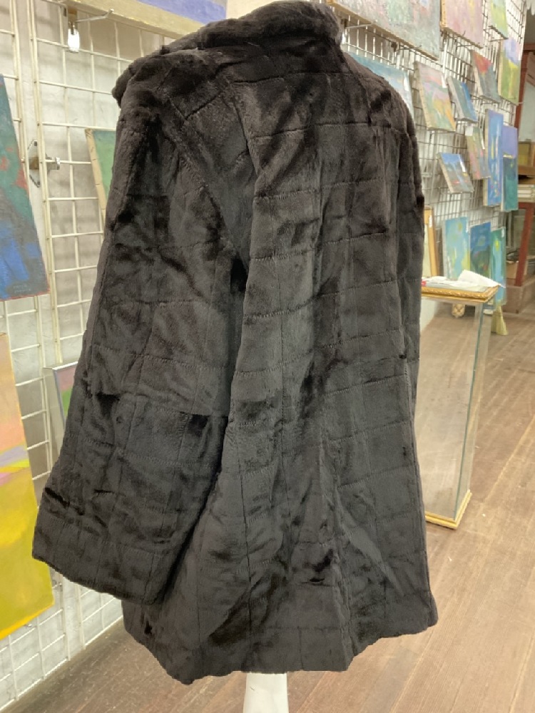 Fine Jerry Sorbara Lady's Pieced Ranch Mink Coat. Lucite double button closure. Excellent condition. Fine quality. Size 10