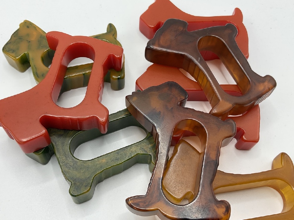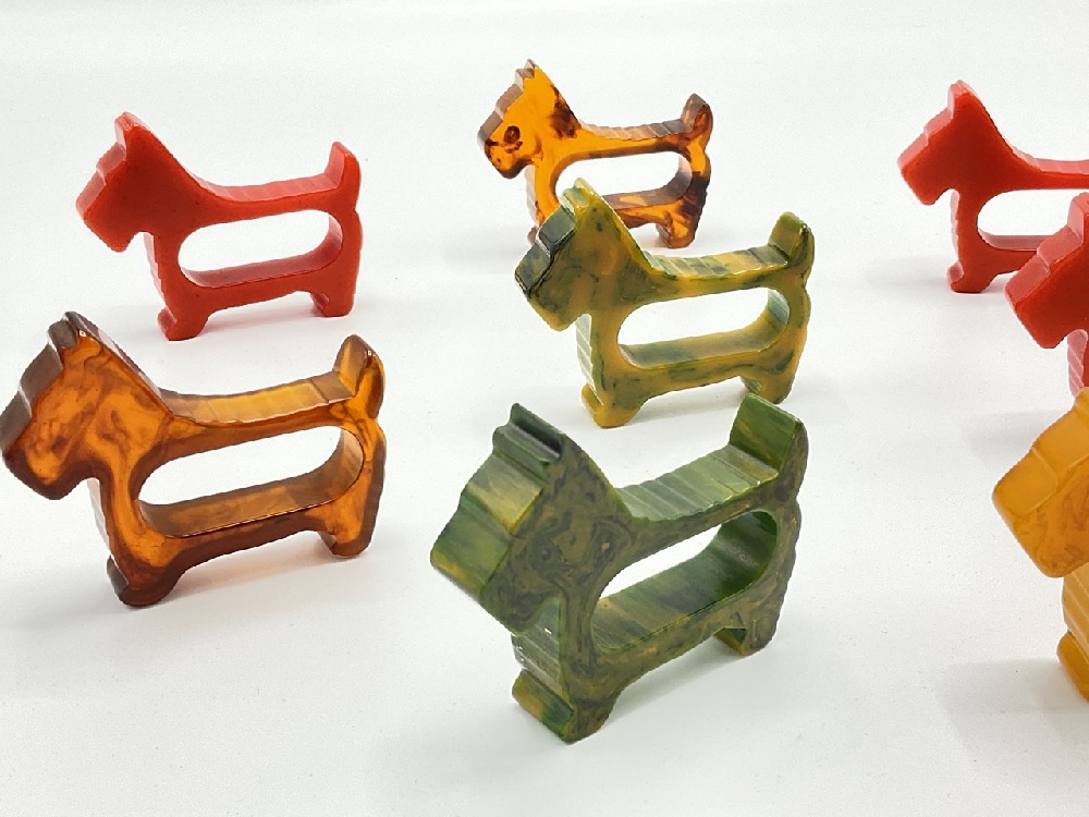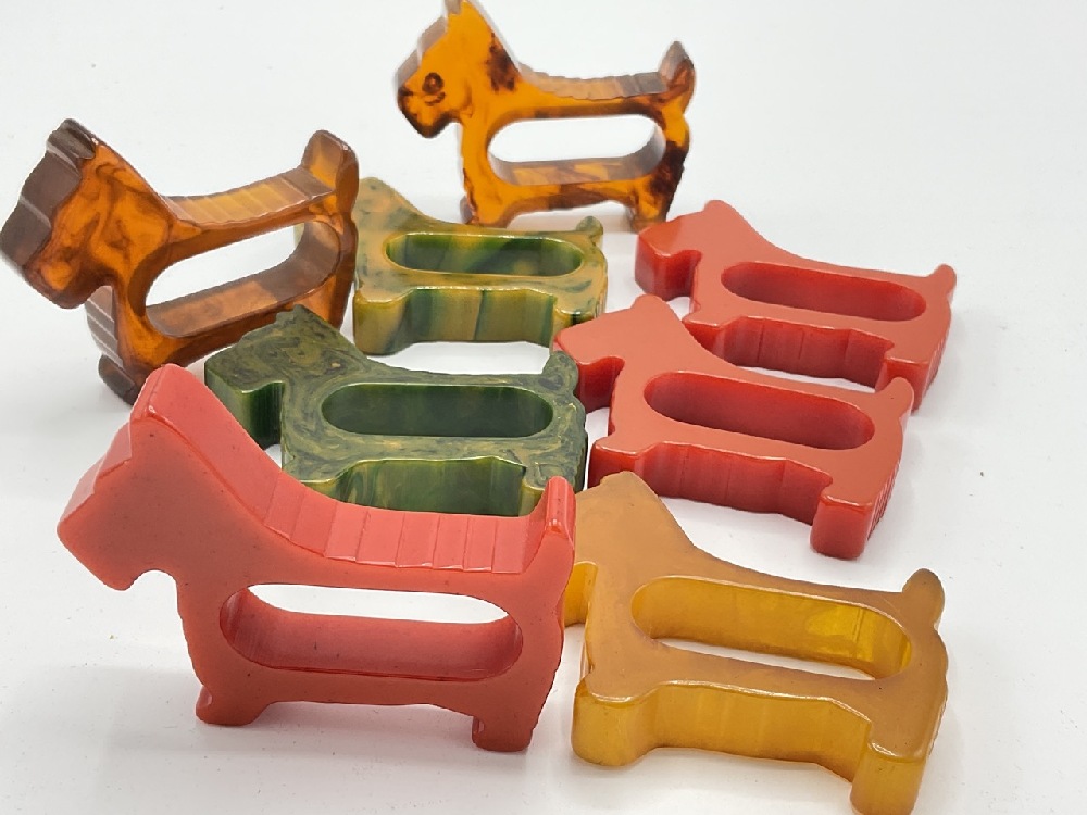 Eight (8) Scotty Dog Vintage Bakelite Napkin Rings.