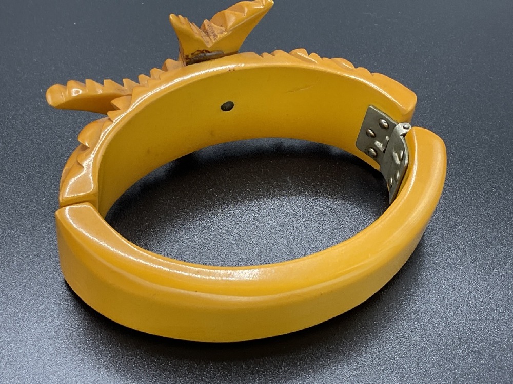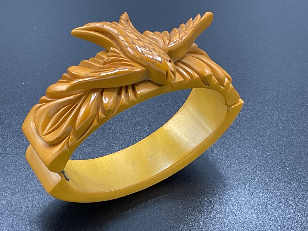 Butterscotch Bakelite Carved "Bird in Flight" Clamper Bracelet.