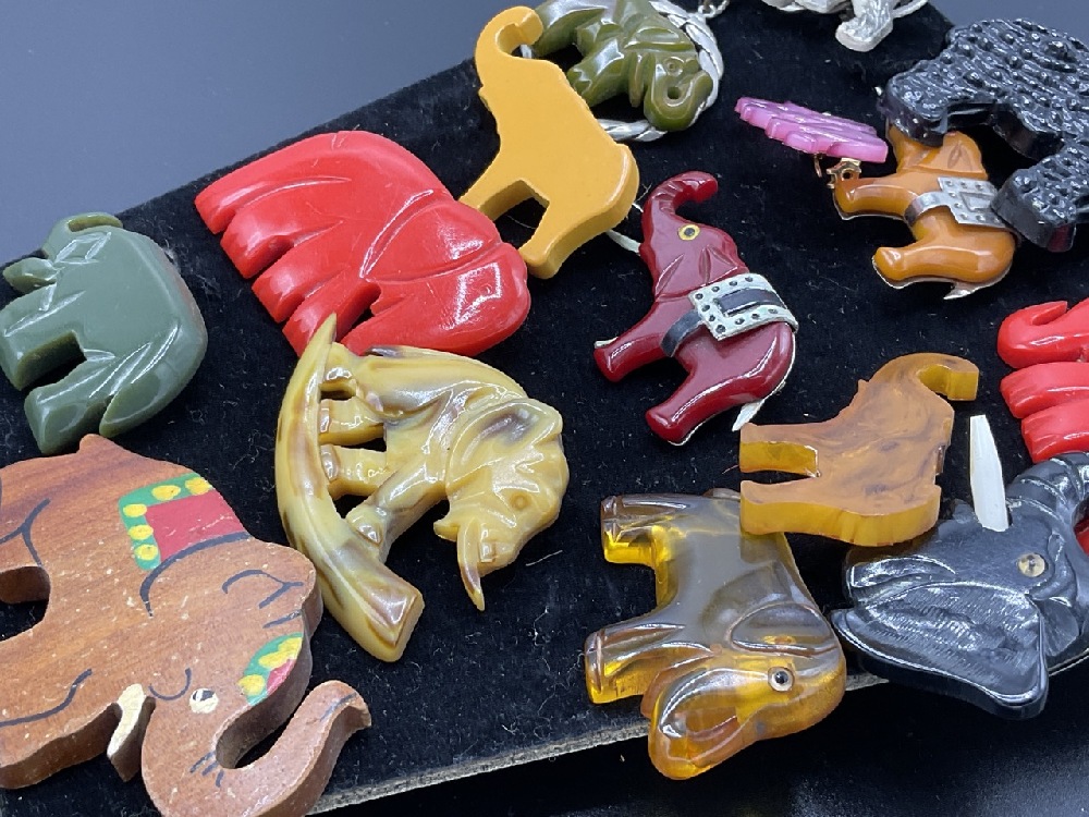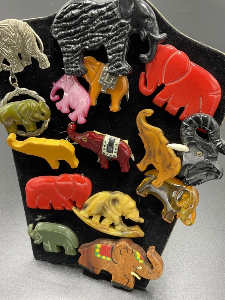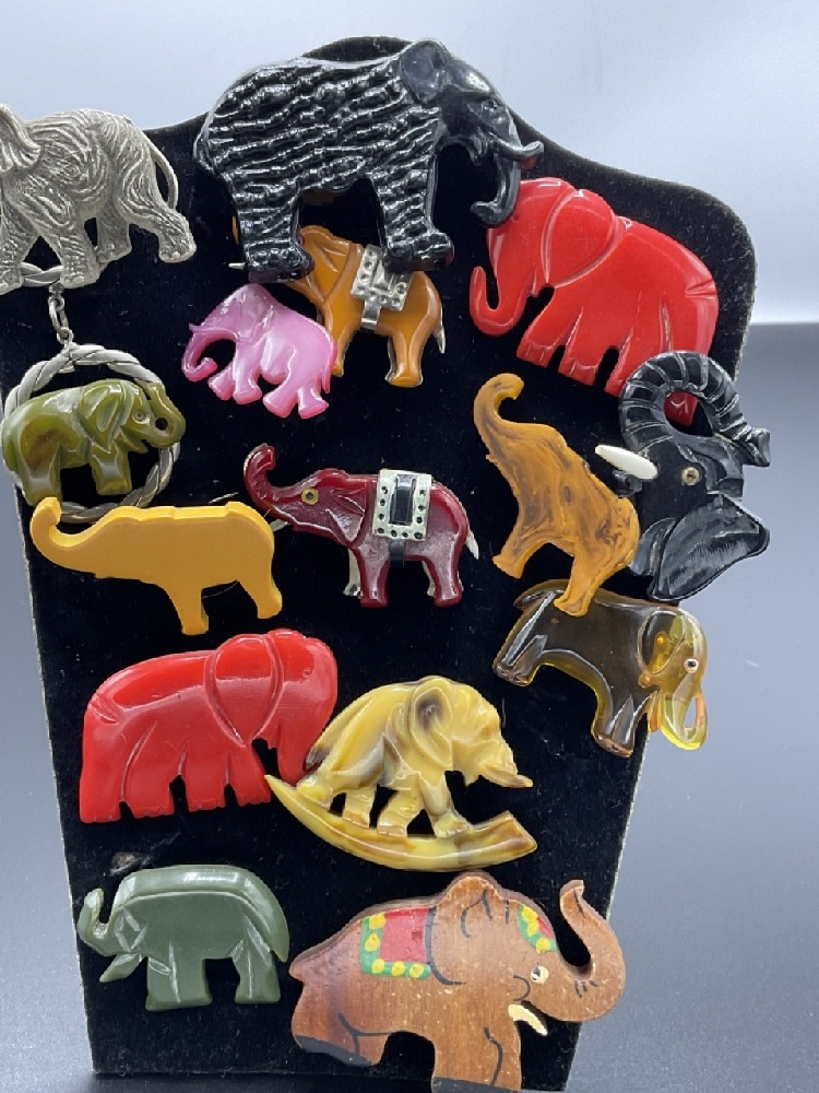 Fifteen (15) Assorted Bakelite and vintage plastic Elephant pins.