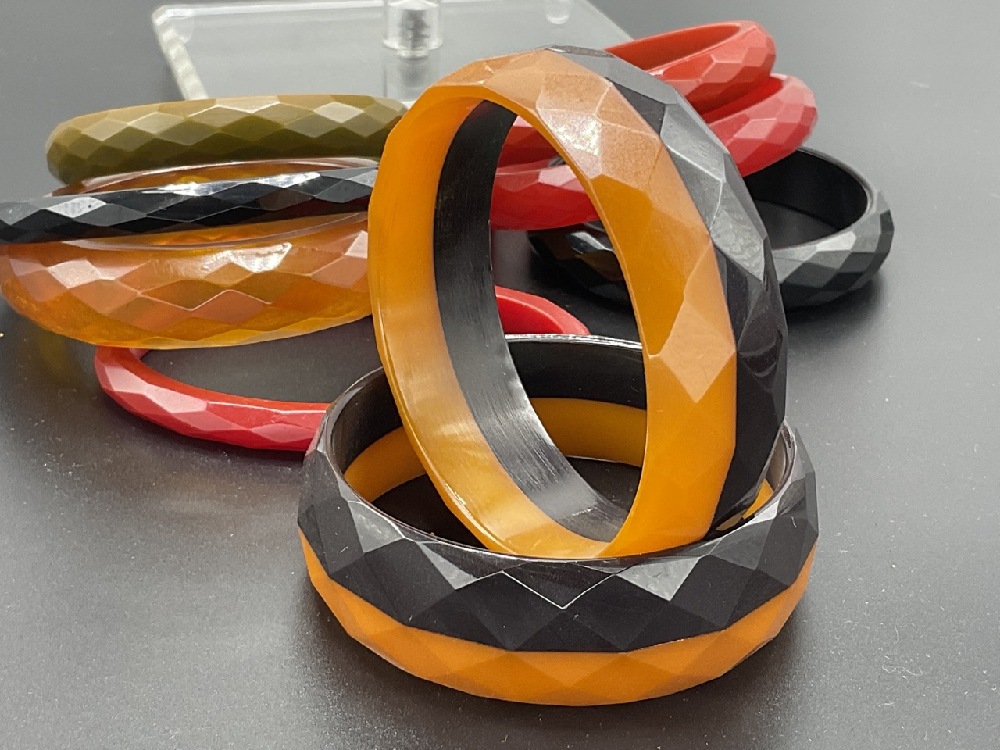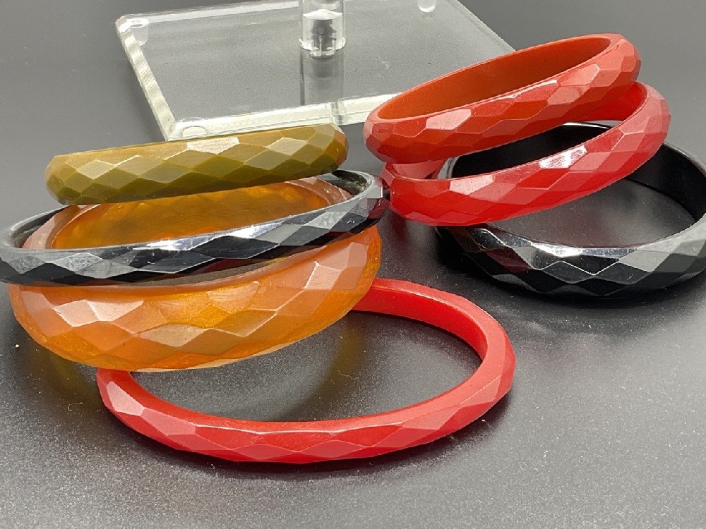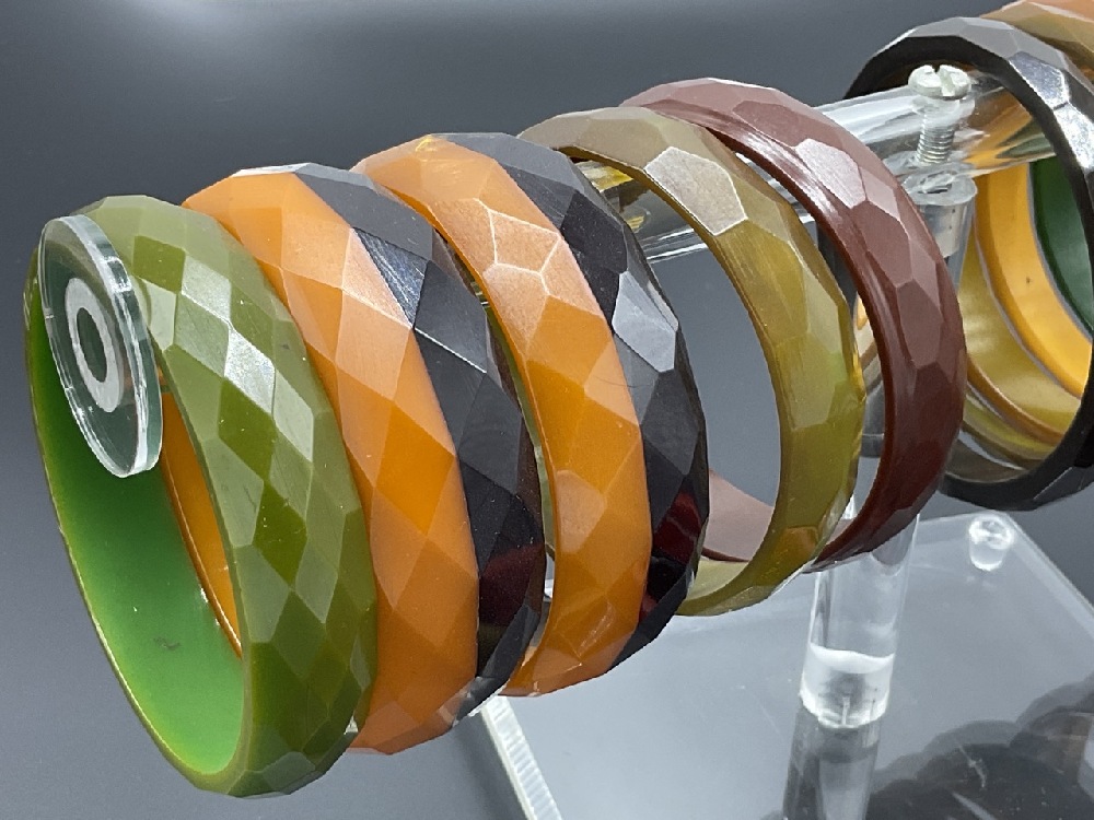Eighteen (18) Bevel Edge Bakelite Bangle Bracelets.