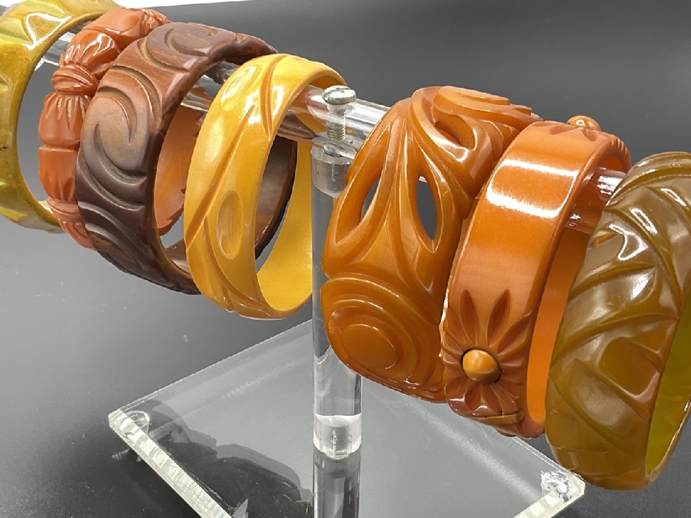 Flannery's has been contracted to sell a Lady's collection of Bakelite jewelry and accessories of which she has acquired over the last four decades. Many purchases were made by reputable jewelry dealers, country antique shops and New York City auction houses. Selling with no reserves. Please explore the catalog carefully and preview the lot images for some great Bakelite finds. Join us In Person at the auction house or Online here at www.flannerysestateservices.com. All property will ship In-House!