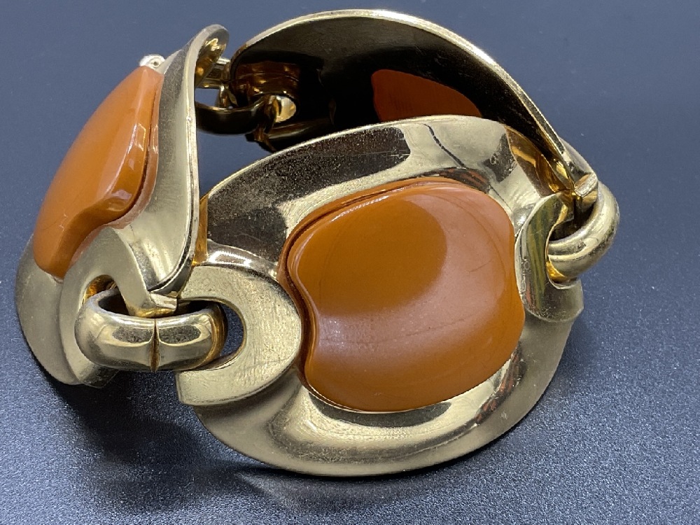 1972 Christian Dior, Made in German Bakelite and Goldtone Runway Bracelet.