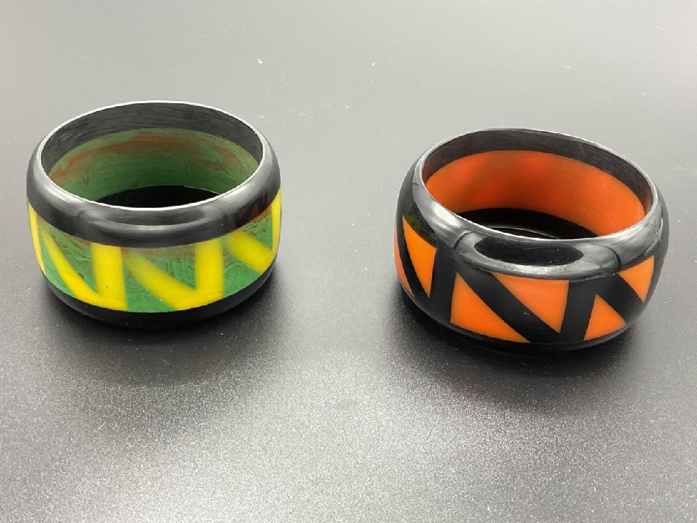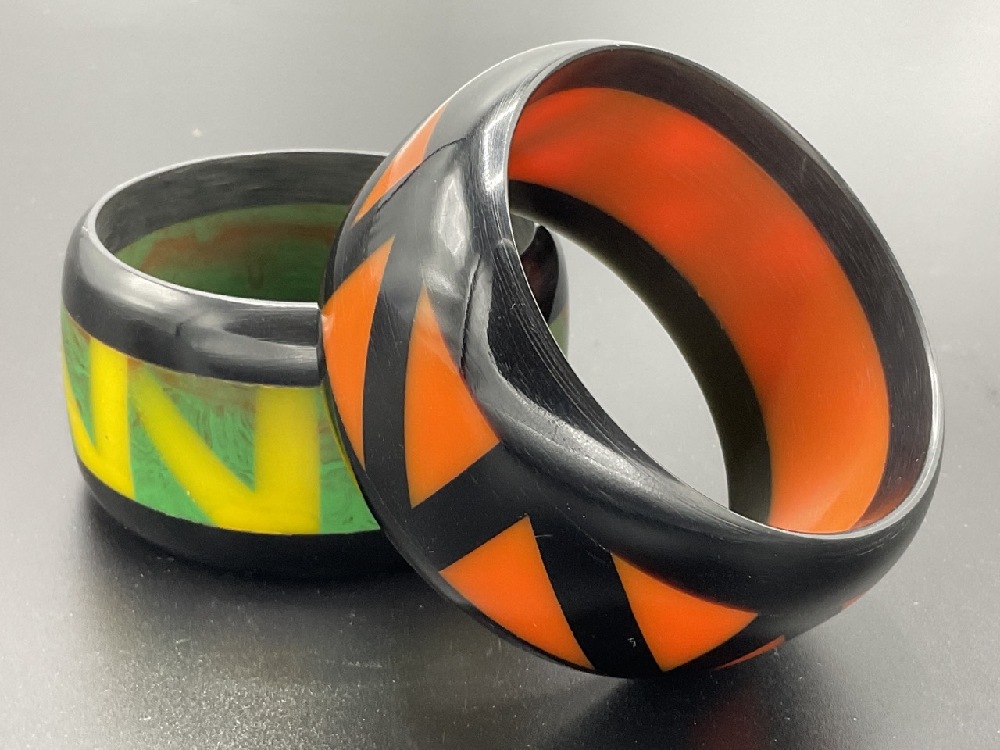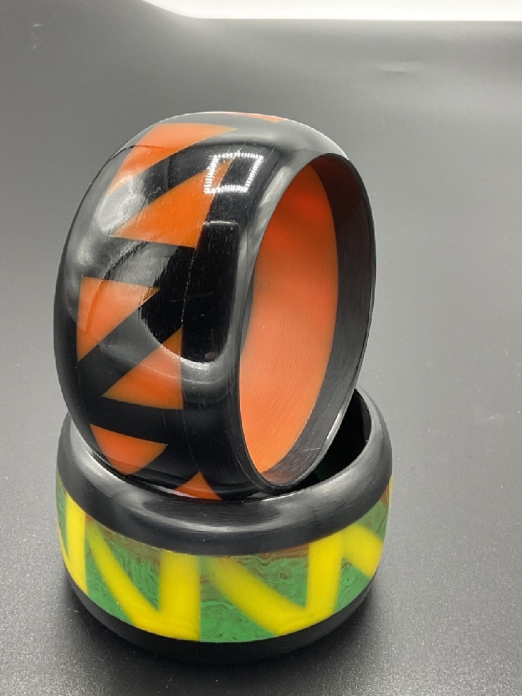 Two (2) Laminated Bakelite ZIG ZAG bangle bracelets.