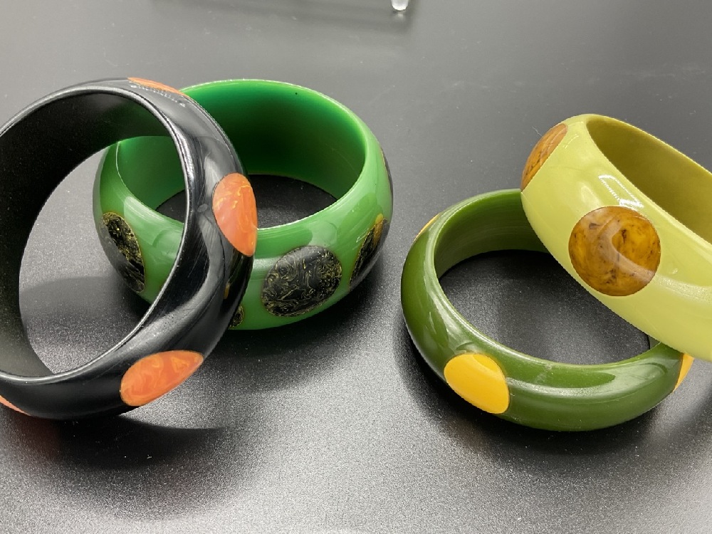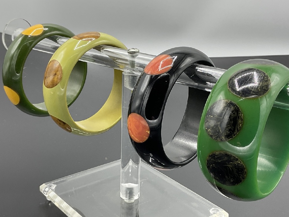 Four (4) Polka Dot Bakelite Bangle Bracelets.