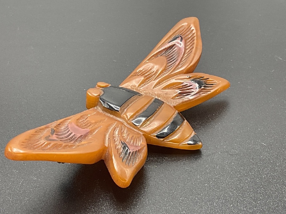 A vintage carved Bakelite Honey Bee Pin.