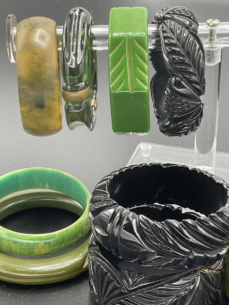 Flannery's has been contracted to sell a Lady's collection of Bakelite jewelry and accessories of which she has acquired over the last four decades. Many purchases were made by reputable jewelry dealers, country antique shops and New York City auction houses. Selling with no reserves. Please explore the catalog carefully and preview the lot images for some great Bakelite finds. Join us In Person at the auction house or Online here at www.flannerysestateservices.com. All property will ship In-House!