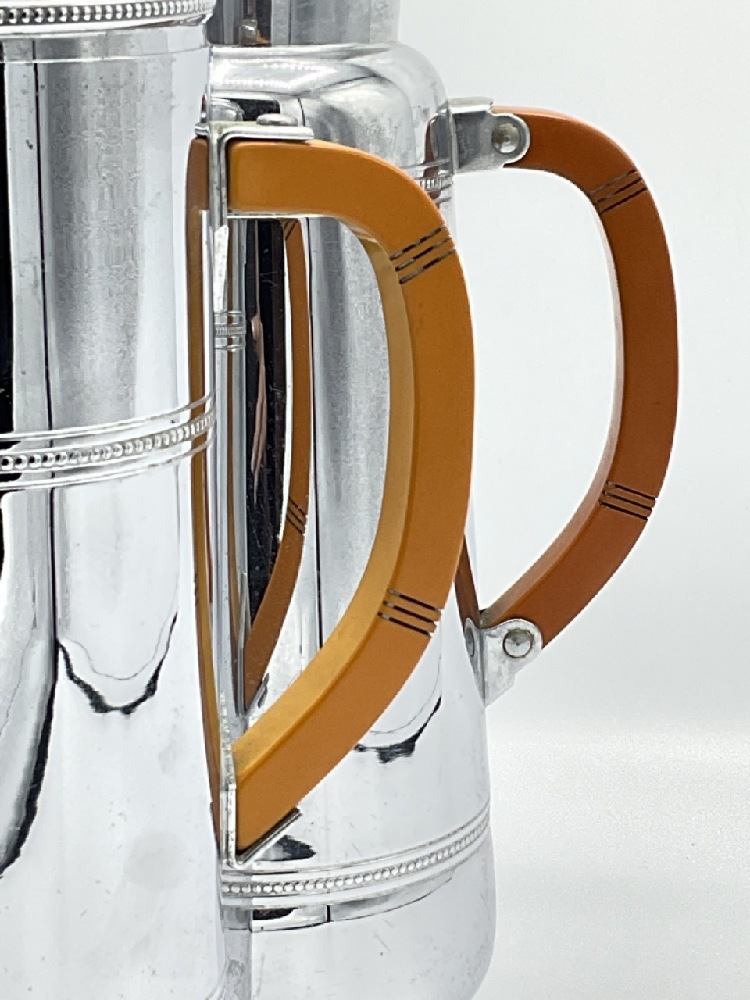 Two Faber Brother Chrome And Bakelite Cocktail Shakers.