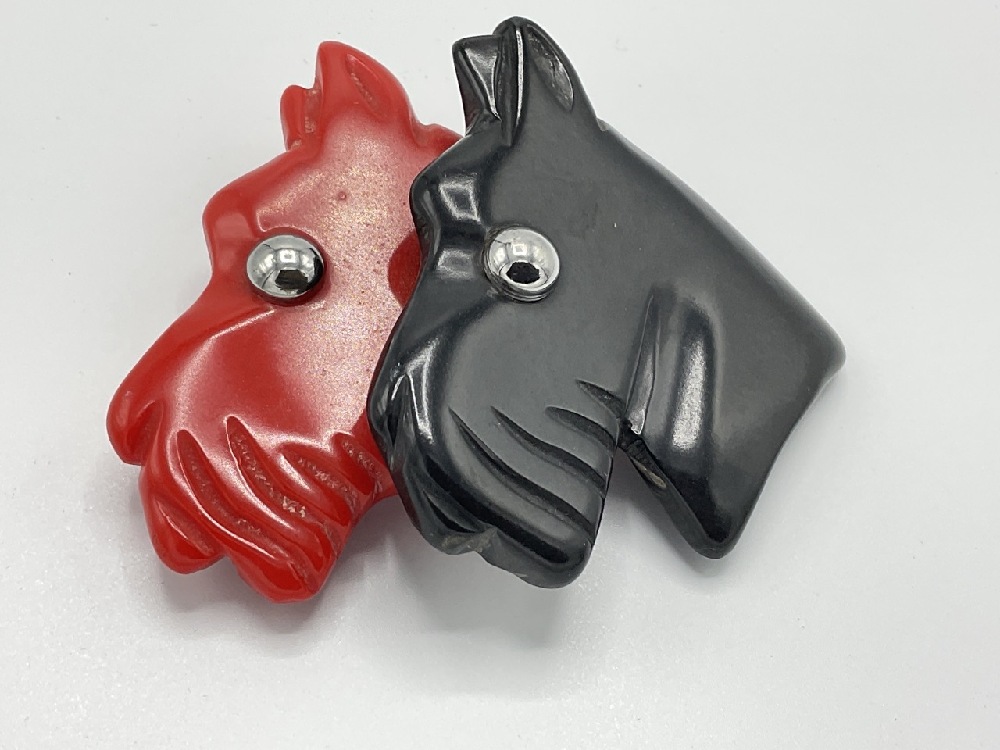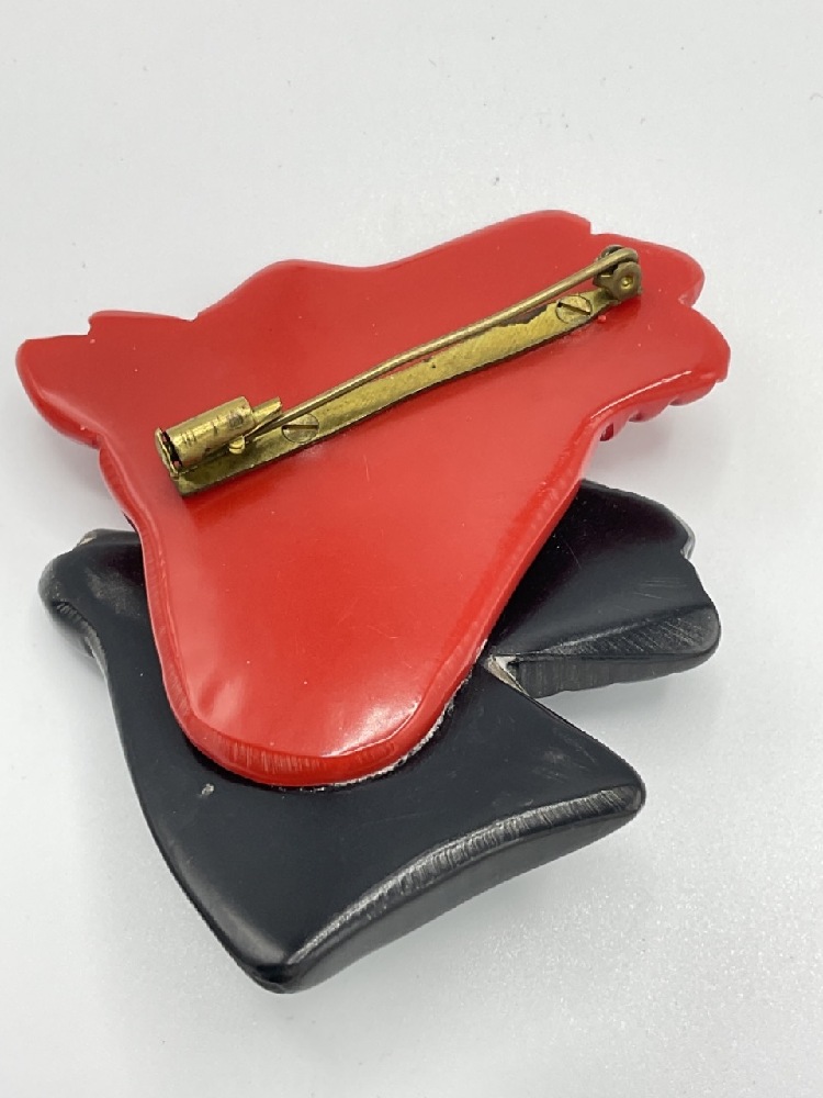 Red and black "Double Cameo" Bakelite Scotty Dog Brooch.