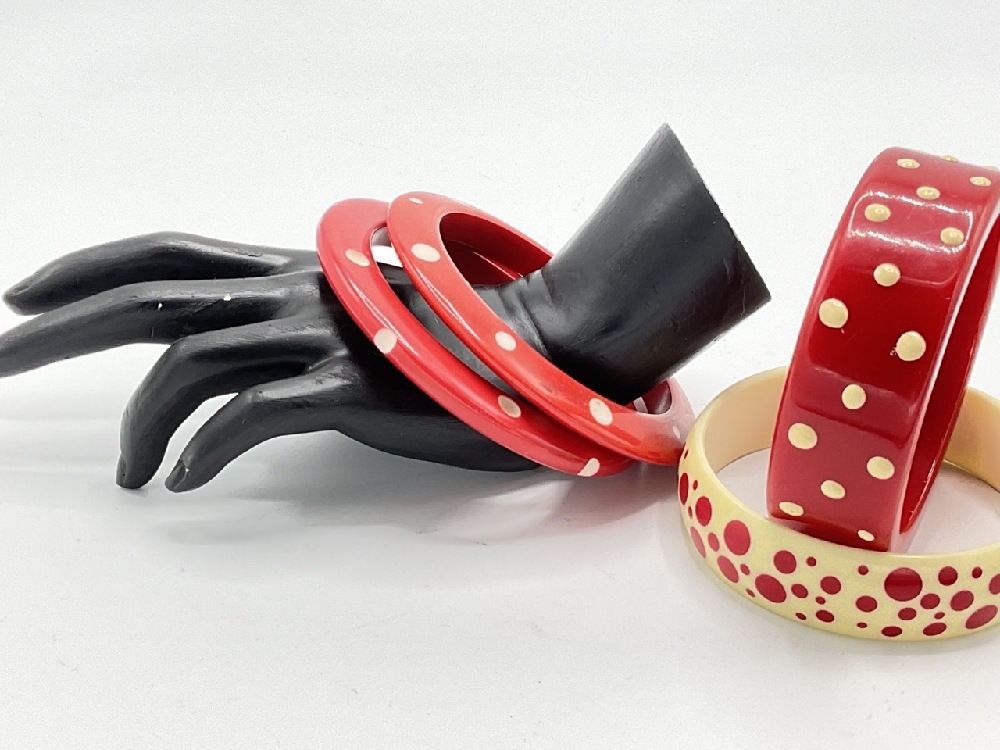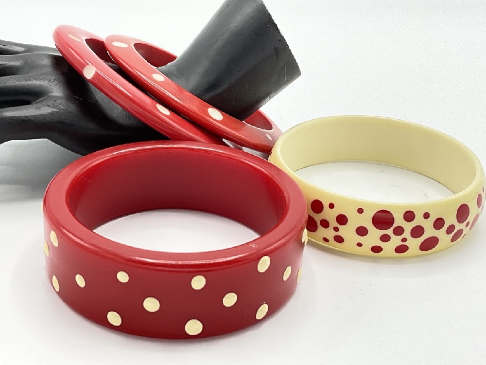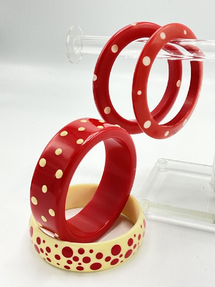 Four (4) Vintage Red and White Polka Dot Bangle Bracelets