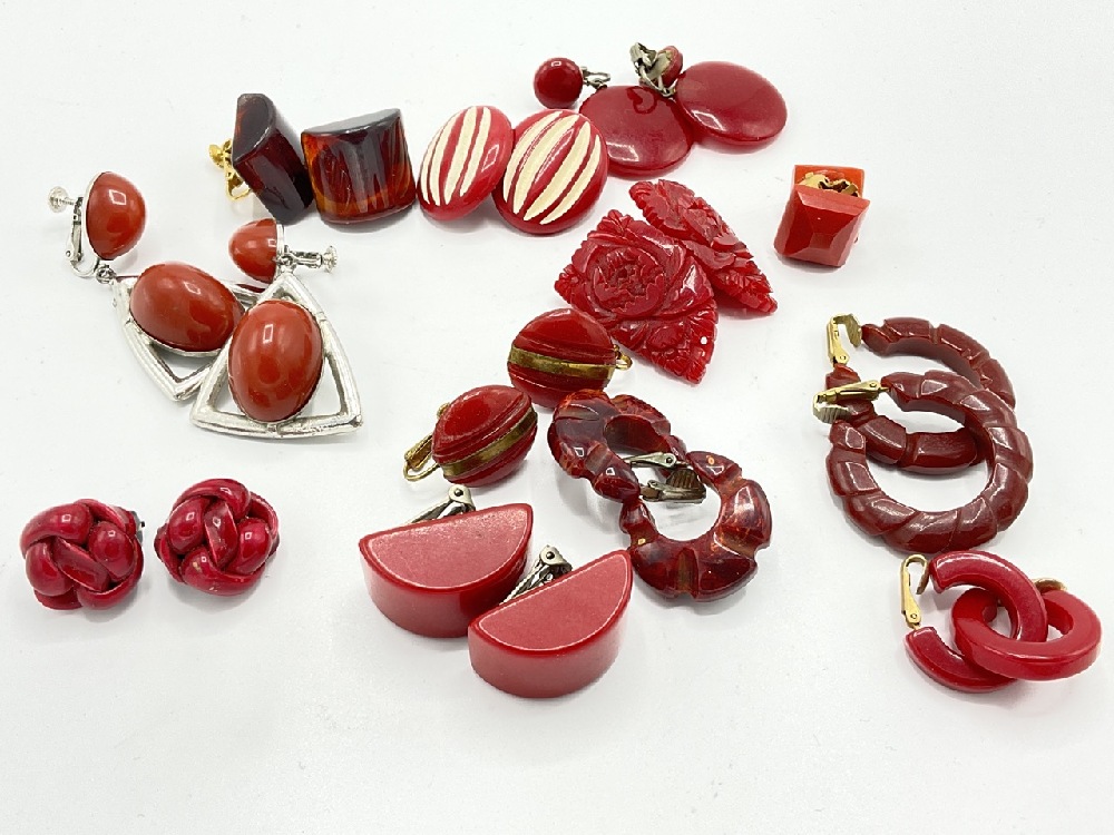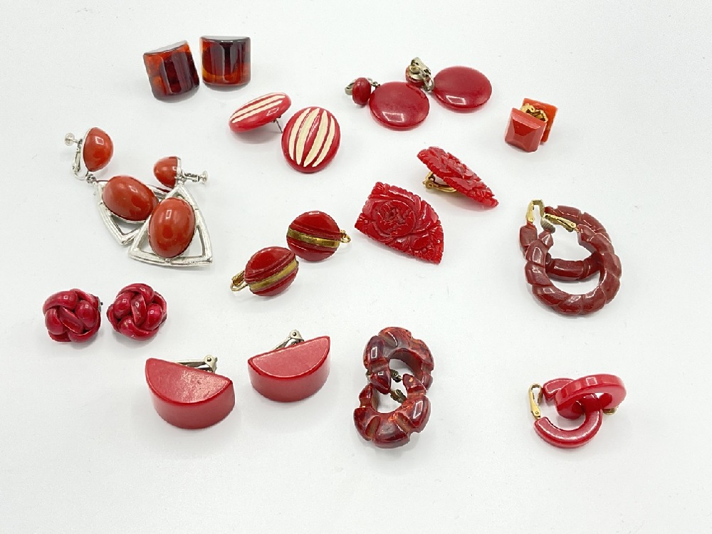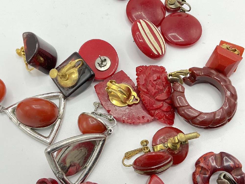Twelve (12) Pairs Vintage Red Bakelite Earrings.